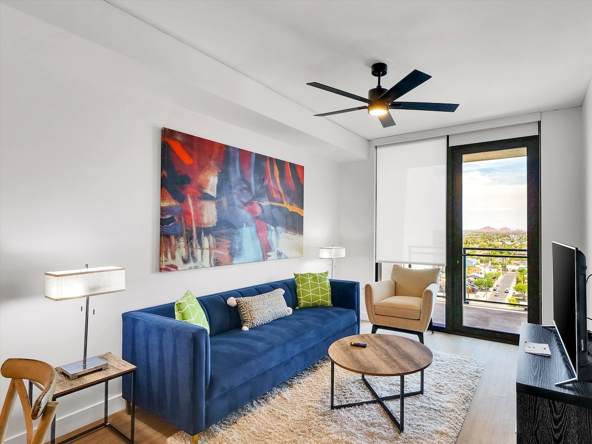 Global Luxury Suites at Phoenix, located in the lively Roosevelt Row of Downtown Phoenix, provides exquisite living with breathtaking city views from its 26-story height. This upscale condominium has roughly 6,500 square feet of ground-floor retail space and designer penthouse flats. Each suite includes: • Wi-Fi • Washer/Dryer • Air Conditioning • Dishwasher • Kitchen • Microwave • Oven