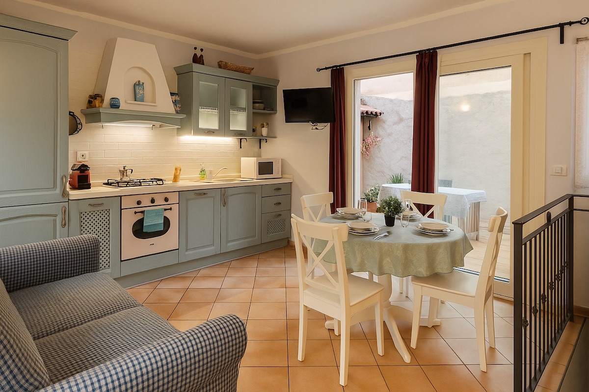 La vostra casa vacanze si propone con un'ampia terrazza posta all'ingresso, ampia zona giorno con cucina completa di tutto aperta sul pranzo che a sua volta si affaccia sul soggiorno, due camere da letto con ampio balcone, due bagni (uno con idromassaggio), ripostiglio e lavanderia con lavatrice e asciugatrice. Inoltre gli spazi esterni sono stati recentemente ampliati per offrirvi uno nuovo spazio esterno composto da prato e un doppio posto auto.
