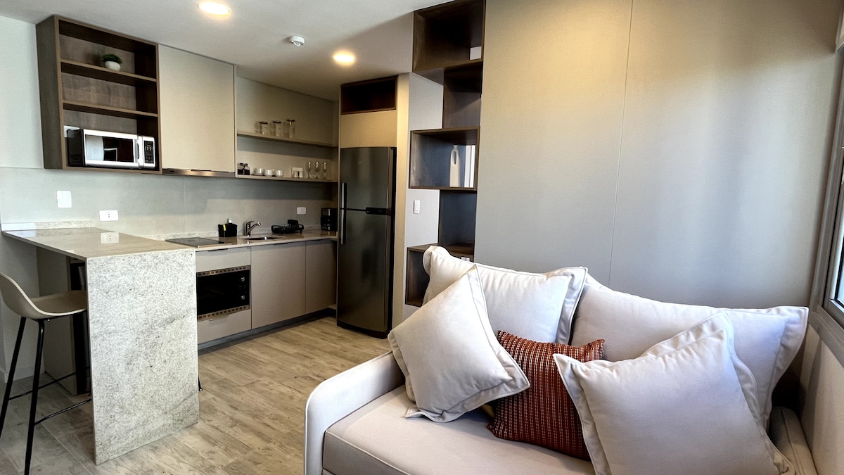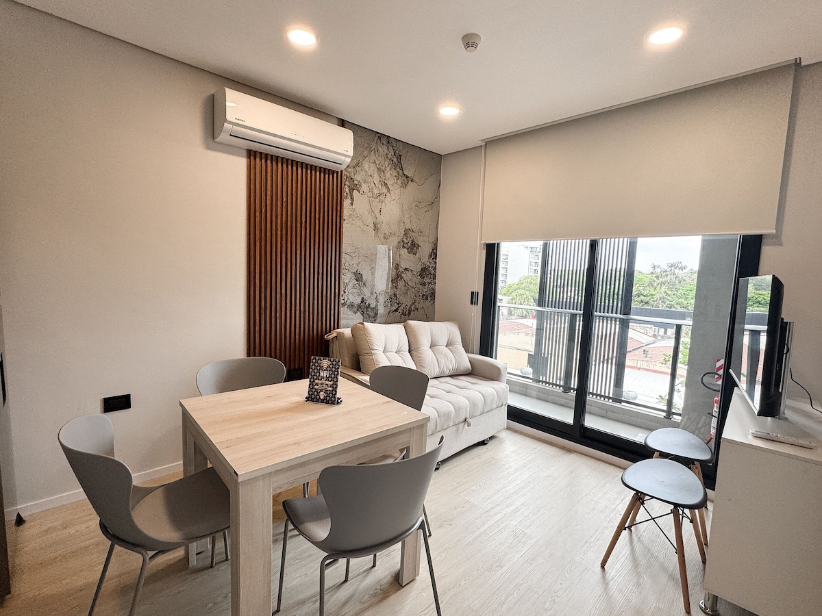 Modern 1-bedroom apartment located in the corporate heart of Asunción, just 10 minutes from the airport and steps from Shopping Paseo La Galería and Shopping del Sol. Perfect for business trips: fast Wi-Fi, coworking space, gym, and pool. Enjoy a 20% discount at the building’s café.