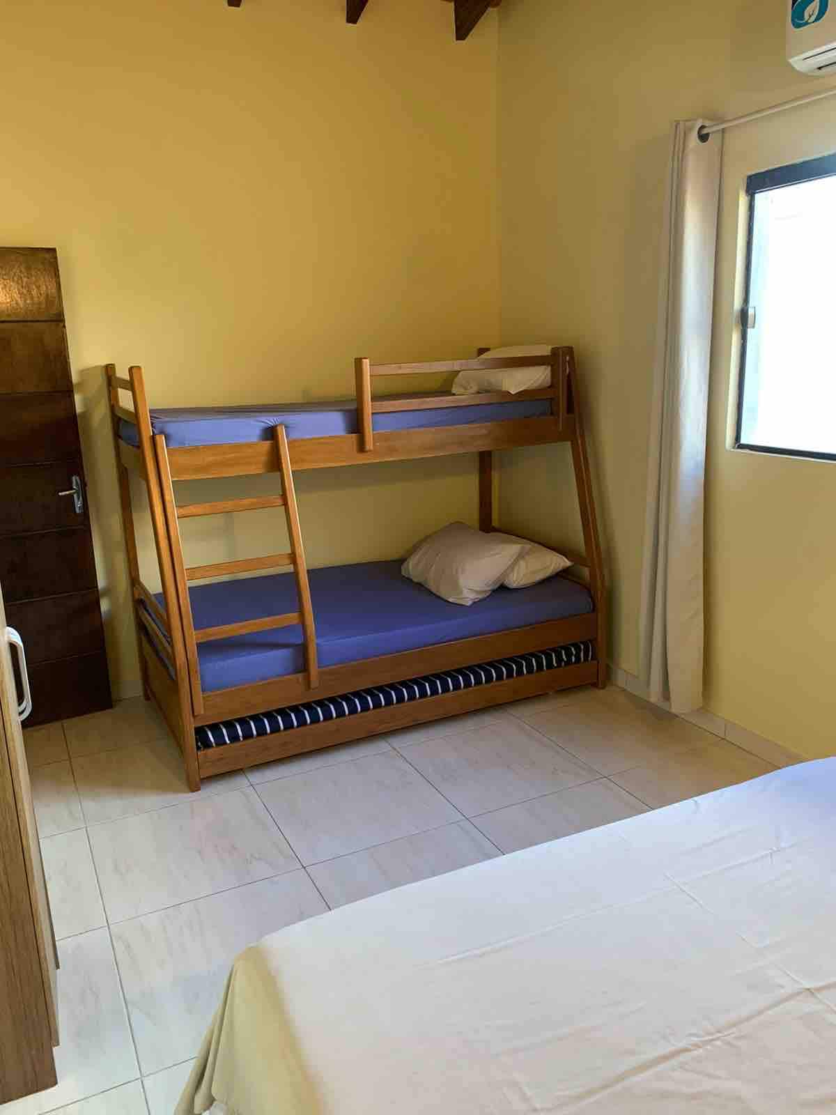 El alojamiento esta compuesto por 6 habitaciones y 9 camas, 4 suites, uno de ellos con baño privado, el resto con baño compartido, todas con a.a., sala comedor con a.a. Cocina, heladera y cubiertos. Las habitaciones son habilitadas de acuerdo a la cantidad de personas reservadas, previo acuerdo con el huésped. Ofrecemos desayuno los días sábados y domingo. Contamos con parrilla, quincho, horno, sabana, almohada, cancha de futbol, volley, piscina, étc. No se aceptan invitados adicionales