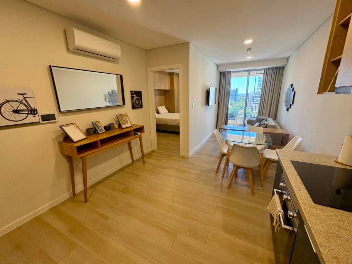 Modern apartment in the heart of Asunción, just 100 meters from the best shopping malls, restaurants, and hotels. Fully equipped, it features a bright living room, modern kitchen, bedroom with a queen-size bed, and a full bathroom. The building offers amazing amenities: gym, game room, semi-Olympic pool, and private parking. Perfect for those seeking comfort, luxury, and an unbeatable location. Book now and enjoy the best of Asunción!