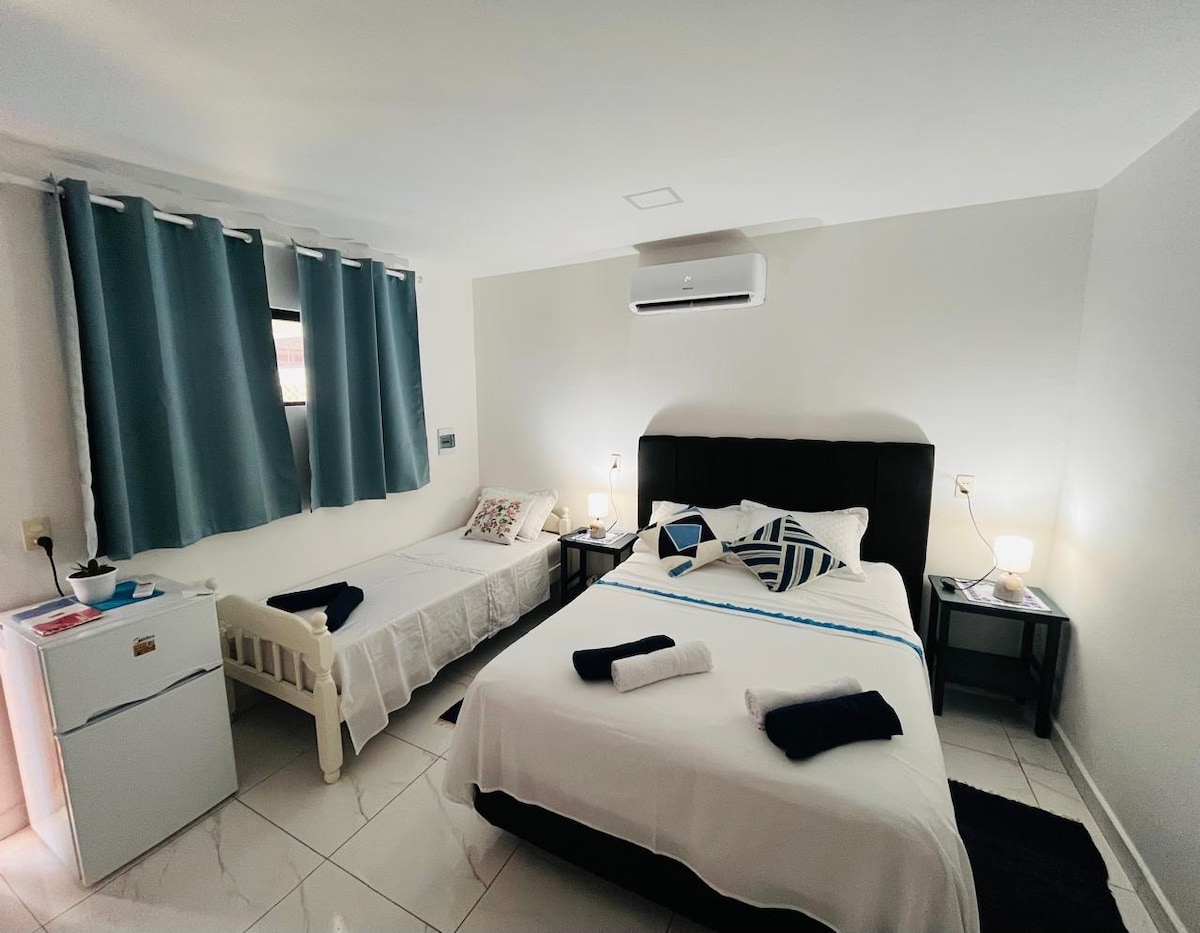 Habitaciones familiares para hasta 4 huespedes con baño privado, Frigobar, TV cable, Hervidora electrica, Aire Acondicionado, Ventilador de Techo, y Servicio de desayuno incluido con el alojamiento.