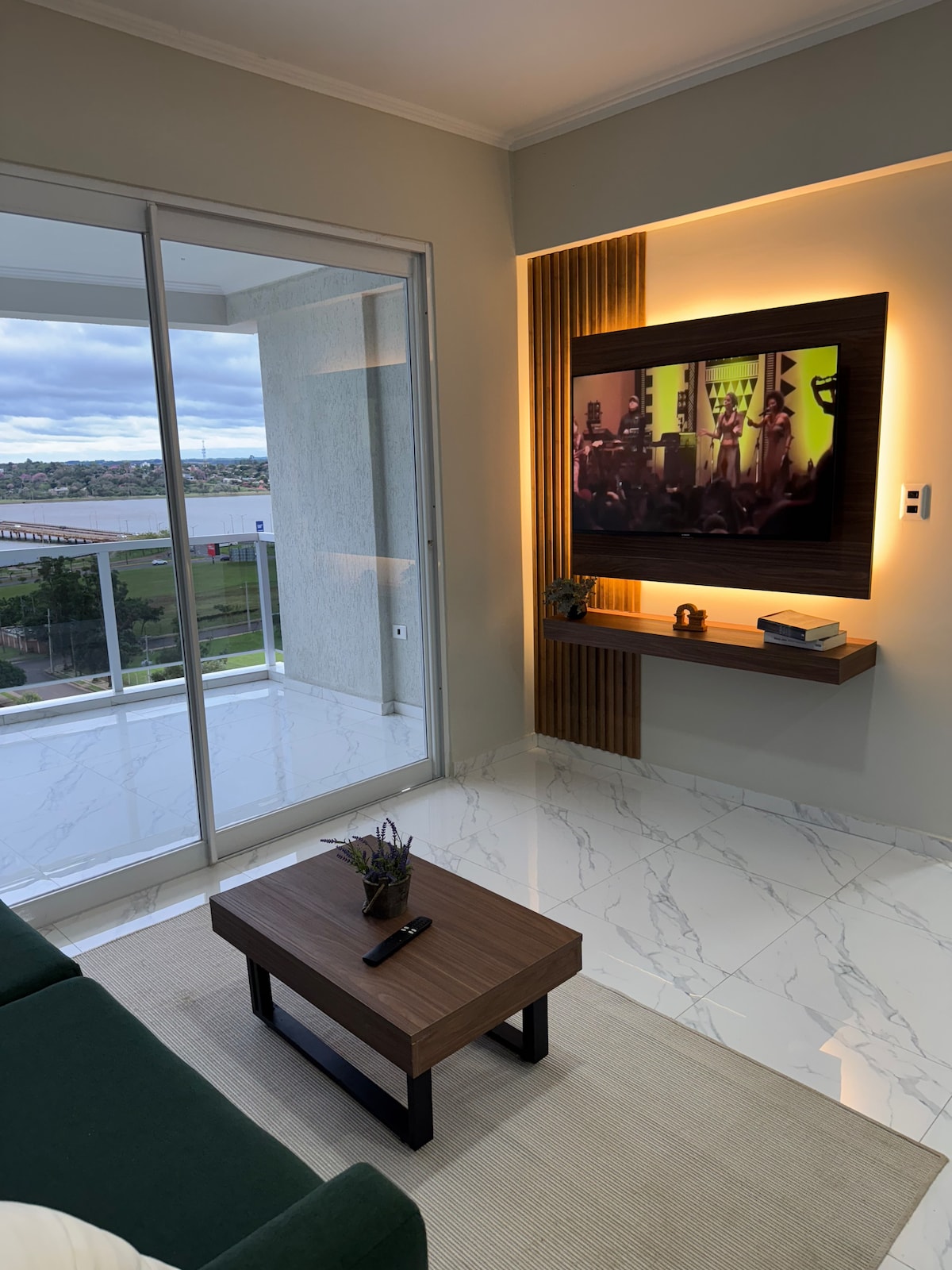 Apartamento con balcón vistas al río y excelente ubicación!📍. A pocos pasos de la Costanera, Playa San José🏖️, restaurantes🍴 y de Shopping Costanera 🛍️. Habitación principal con cama matrimonial 🛏️, sala con sofá cama(2.10 x 0.95 x 0.92) 🛋️, comedor, cocina integrada y baño moderno 🚿 Seguridad 24/7 🔒 y servicio de lavandería dentro del edificio para tu comodidad. Aires Splits en habitación y sala-comedor.
