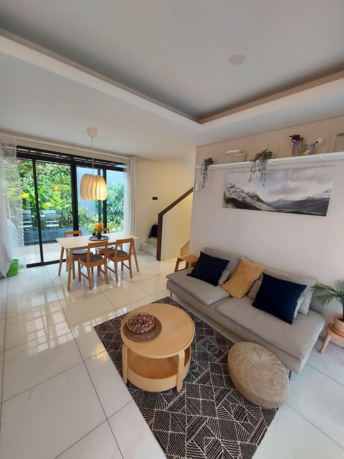Welcome to our cozy, sharia-compliant home in Kota Baru Parahyangan, Bandung! Our house offers 3 air-conditioned bedrooms, 2 bathrooms, and a fully equipped kitchen. Enjoy smart TVs with Netflix in the master bedroom and living room. Relax on the terrace, adjacent to a playground and basketball court. We are close to IKEA, Wahoo Waterpark, Bumi Hejo culinary area, and the Woosh high-speed train station. Family or couples must present a marriage certificate or ID.