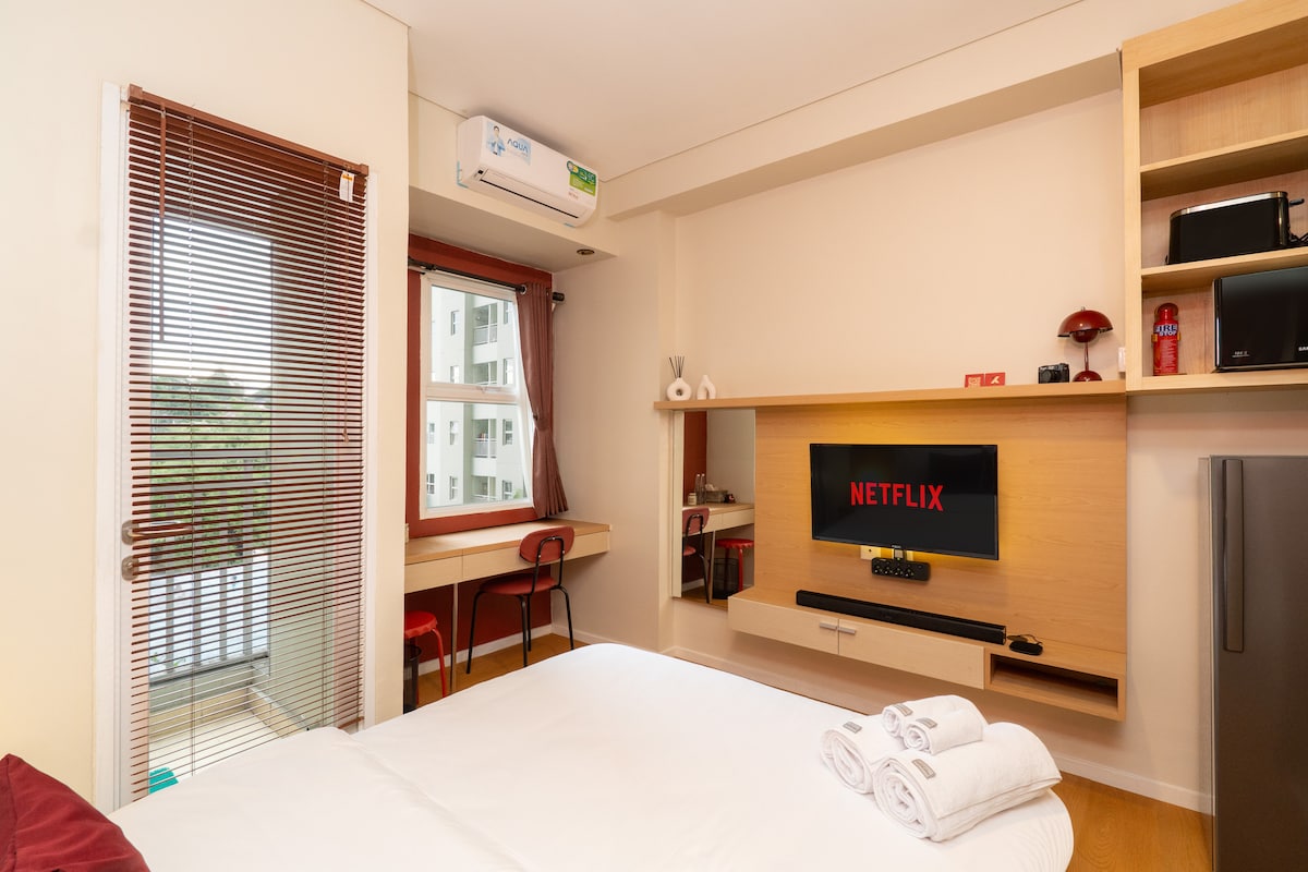 Located in the center of Bandung city, our apartment is flanked by 2 big malls, BIP Mall & BEC Mall, very easy to get anything on a walking distance. You will enjoy the sunset of Bandung city at a height of 21st floor Free Fast WiFi, with 55 Inch 4K Smart TV, with Premium membership of Netflix, Disney+, HBO Max, IQIYI, Viu You will sleep on a King Size, King Koil mattress, plus 2 extra floor mats Kindly note that parking —both for motorcycles and cars— is cashless only