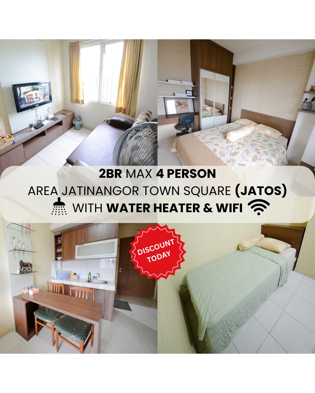 Apartemen 2 kamar tidur yang nyaman di pusat kota Bandung. Cocok untuk short trip maupun long stay, perjalanan bisnis, atau menginap bersama keluarga. Lokasi strategis dekat Alun-Alun, Braga, dan Trans Studio. Dilengkapi Wi-Fi, smart TV, dapur, air hangat, dan self check-in. Akses 24 jam, gedung aman, banyak minimarket, dan kuliner malam street food.