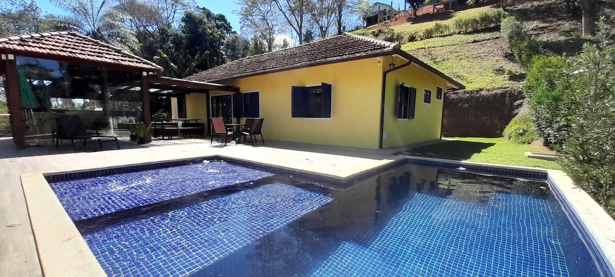 Relaxe em nossa casa de campo encantadora. Ambiente calmo e agradável . - O sítio dispõe de uma piscina super aconchegante - Uma banheira aquecida com hidromassagem. - Prezamos pela limpeza e bem estar de nossos hóspedes. - Fornecemos roupas de cama e banho, caso seja necessário.