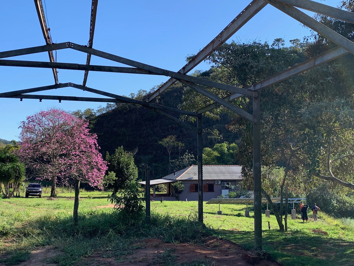 Lugar de apaziguamento, de celebrar em paz. Apaziguar o tempo, a alma, o corpo e viver os dias sob o domo do céu e das árvores, senhoras do território. A Casa de Cima fica num terreno de 5 mil m². Tem sala, quarto, escritório, cozinha, banheiro, varandas. Área gourmet com chuveirão, banheiro, piscina e churrasqueira. Lá em baixo, piscina natural com água de nascente. Abriga quatro pessoas. Estamos no Condomínio Capim Roxo, a 5km do centrinho de Secretário, portaria 24h, segurança total.