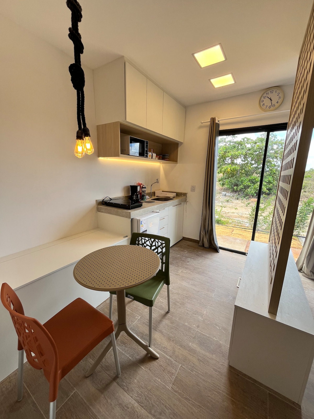 Curta uma experiência elegante neste lugar bem localizado. Próximo dos principais restaurantes cidade, mercados, academia e praia. No loft vc terá a cozinha equipada com fogão elétrico, liquidificador, cafeteira dolce gusto, frigobar 127l, sanduicheira e os utensílios básicos. Na sala tv smart, cofre e sofá cama. O quarto podemos acordar até 3 hóspedes com ar condicionado de 12 mil btus. O banheiro equipado com secador e chuveiro elétrico.