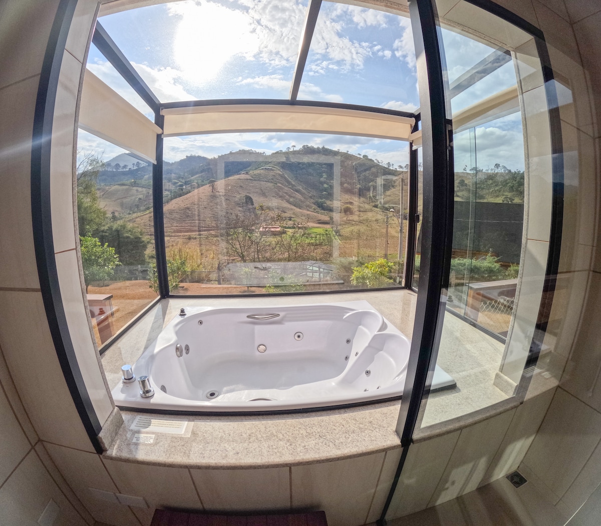 Located on one of the highest mountains in São Bento do Sapucaí, Chalet nas Nuvens (just 20 minutes from downtown São Bento) is a luxurious glass mountain house offering exclusive trails, a farm with animals, hot tub, thousands of fruit trees, a bbq, deck with the most beautiful sunset in the region, a fireplace, fire pits, and magnificent year-round views of the Serra da Mantiqueira Mountains. We like to call it "heaven on earth."