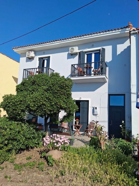Welcome to our stone house in the traditional village on Lesvos island. Set on seven acres, enjoy breathtaking sea views, orchards, and oak groves. Just a 3-minute drive from pristine beaches and tavernas, tradition with modern comfort. As part of Amazones Eco Land, women’s community, the house offers privacy. Guests can harvest from our organic garden (seasonal) and cook in the outdoor kitchen. We've enhanced shaded outdoor areas and upgraded cooling for a perfect stay in all seasons.