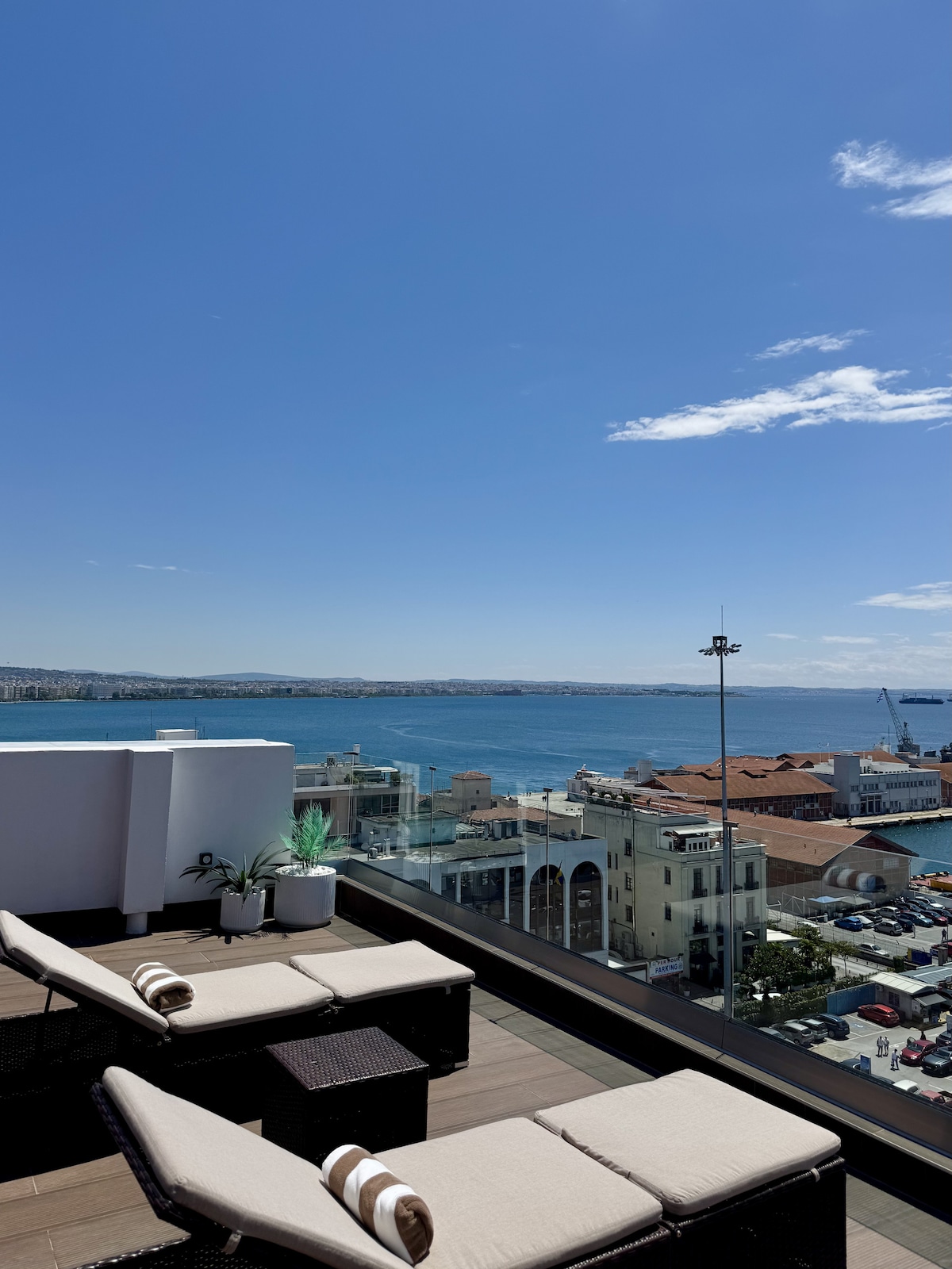 Experience the city from ABOVE at our premium rooftop suite in the heart of Thessaloniki, located near the vibrant Ladadika district, just 5 min from Aristotelous square. Enjoy breathtaking views of the sea and the city landscape, featuring a delightful outdoor jacuzzi and a comfortable lounge area. Inside, indulge in relaxation with a luxurious bathtub experience. Perfect for a romantic escape or leisure retreat.