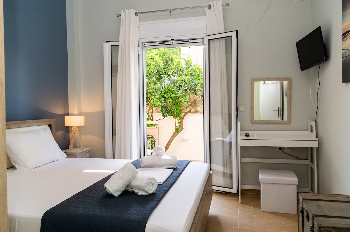 Newly, completely renovated 1st floor studio in the heart of Kalamata, in the immediate vicinity of the Central Square and International Dance Center. It has 1 king size bed and a fully equipped kitchen. Modern, well-furnished and fully functional. It is suitable for couples, families with infants, professionals or anyone else who desires relaxation and tranquility.