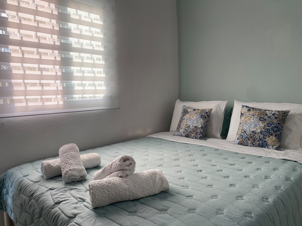 Βρίσκεται σε ένα νεόδμητο συγκρότημα κατοικιών μόλις 150μ από την θαυμάσια παραλία με δωρεάν ιδιωτικό χώρο στάθμευσης. Το κλιματιζόμενο διαμέρισμα μπορεί να φιλοξενήσει άνετα έως 4 άτομα ενώ διαθέτει δάπεδο με πλακάκια, ιδιωτικό μπάνιο, υπνοδωμάτιο, τηλεοράσεις smart, Wi-Fi, ντουλάπα, σαλόνι και πλήρως εξοπλισμένη κουζίνα. Διαθέτει πλυντήριο, ψυγείο, φούρνο, τοστιέρα, καφετιέρα και βραστήρα. Στο διαμέρισμα υπάρχει αίθριο με μπάρμπεκιου, βεράντες με θέα τον κήπο και την πισίνα.