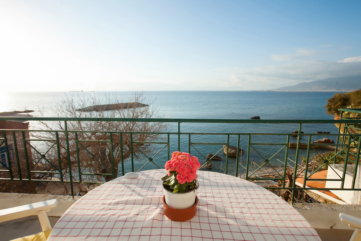 Welcome to Kalamata! The house is only 15 minutes away from the center of Kalamata and only 5 minutes from the airport. It has a huge terrace, is pet friendly and cozy. It is perfect for couples, or a single person. WiFi and new double bed added! It is furnished, modern, freshly painted and has a great view of the mountainside. You get: A warm welcome! Coffee maker, stove, fridge, and WiFi Clean Towels, sheets, basic hygiene items Privacy Quiet Pet friendly environment AC