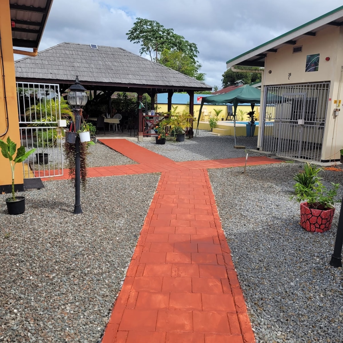 Ruime woning in Surivillage, een rustige wijk in Paramaribo Noord, geschikt voor groepen tot 12 personen (14 met extra studio). De woning heeft 6 slaapkamers, een volledig uitgeruste keuken, een overdekt terras en een grote tuin met zwembad, perfect voor ontspanning. Vier slaapkamers zijn voorzien van airco, twee van ventilatoren. Een extra studio met slaapkamer, badkamer en kitchenette is optioneel bij te huren.