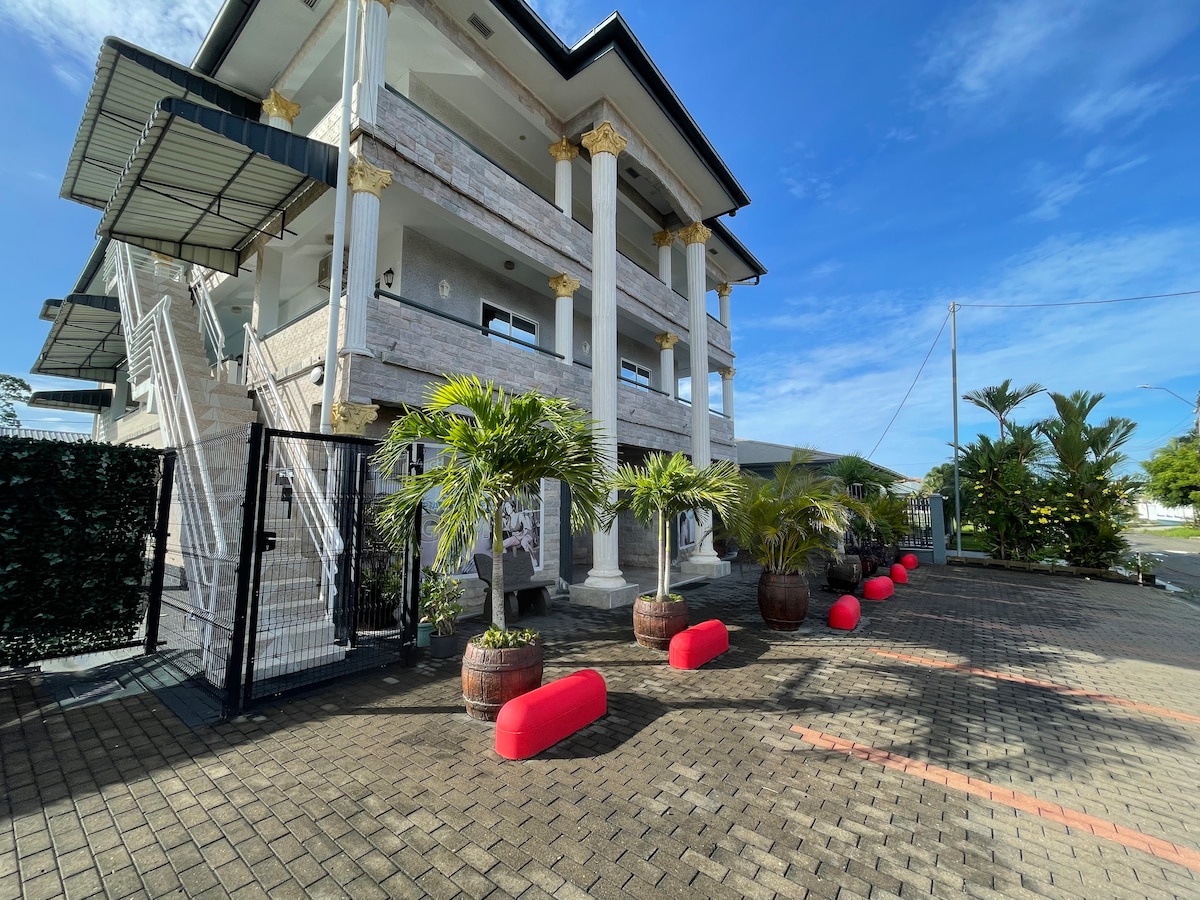 Centrally located luxurious studio, saltwater pool with sundeck, private bathroom/toilet, fully equipped kitchenette, 1 double bed and sofa bed sleeps max. 2/ bed. Breakfast at Elementz Beans & Bites upfront, supermarket nextdoor. Nighttime security, safe neighbourhood, 10 -15 min drive from citycenter and shoppingmall. Kids under 5yrs stay for free. No pets. Airport shuttle possible(contact the frontdesk)