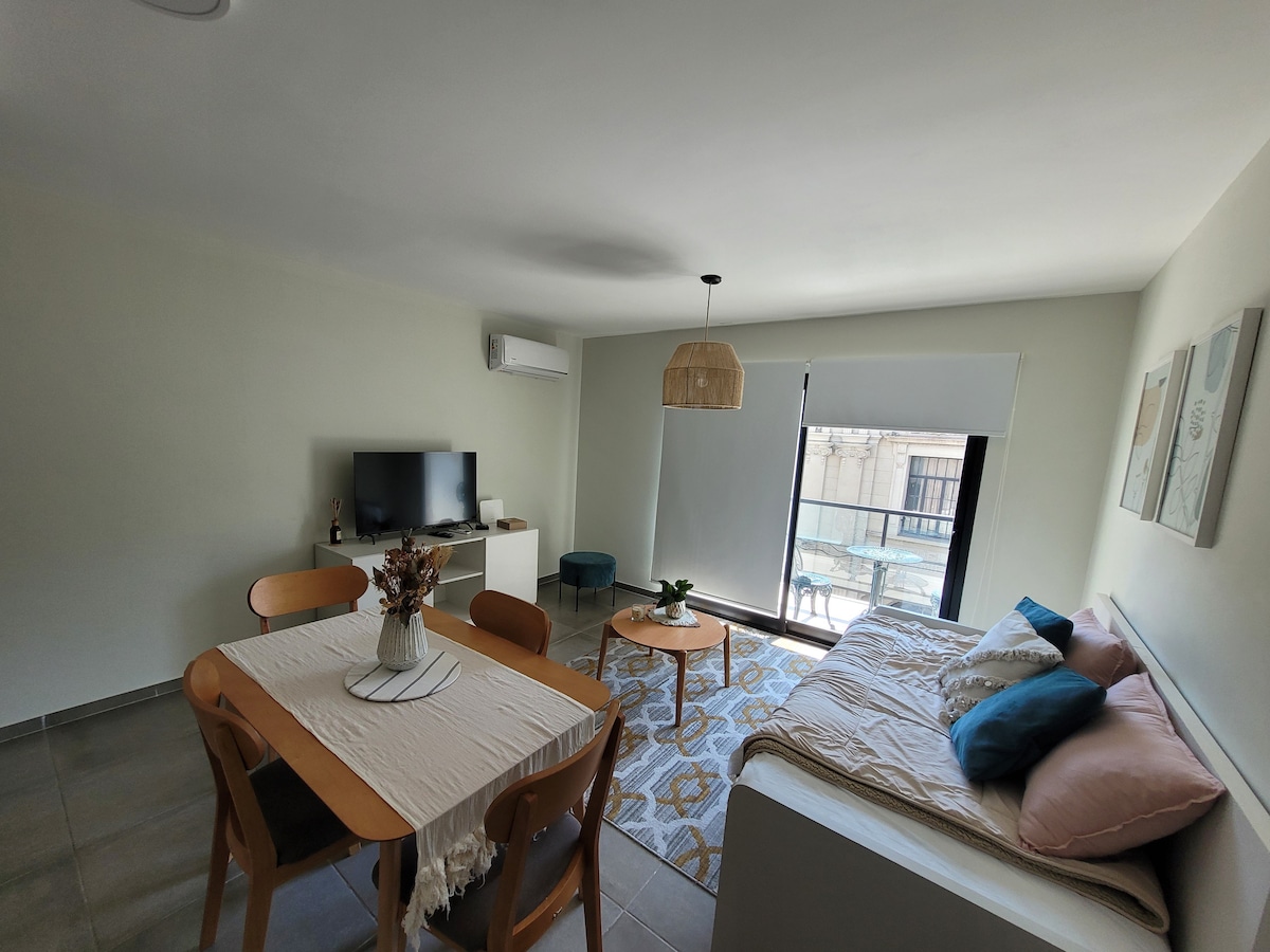 El departamento es nuevo, decorado con buen gusto; Perfecto para descansar, recorrer, conocer la ciudad o realizar visitas de negocio. Situado a escasos pasos de la plaza Saenz Peña, una de las más pintorezcas y concurridas de la ciudad, la ubicación es inmejorable: Una zona segura en la que se encontrán todos los servicios, supermercados, panaderías, heladerías, bancos, etc.