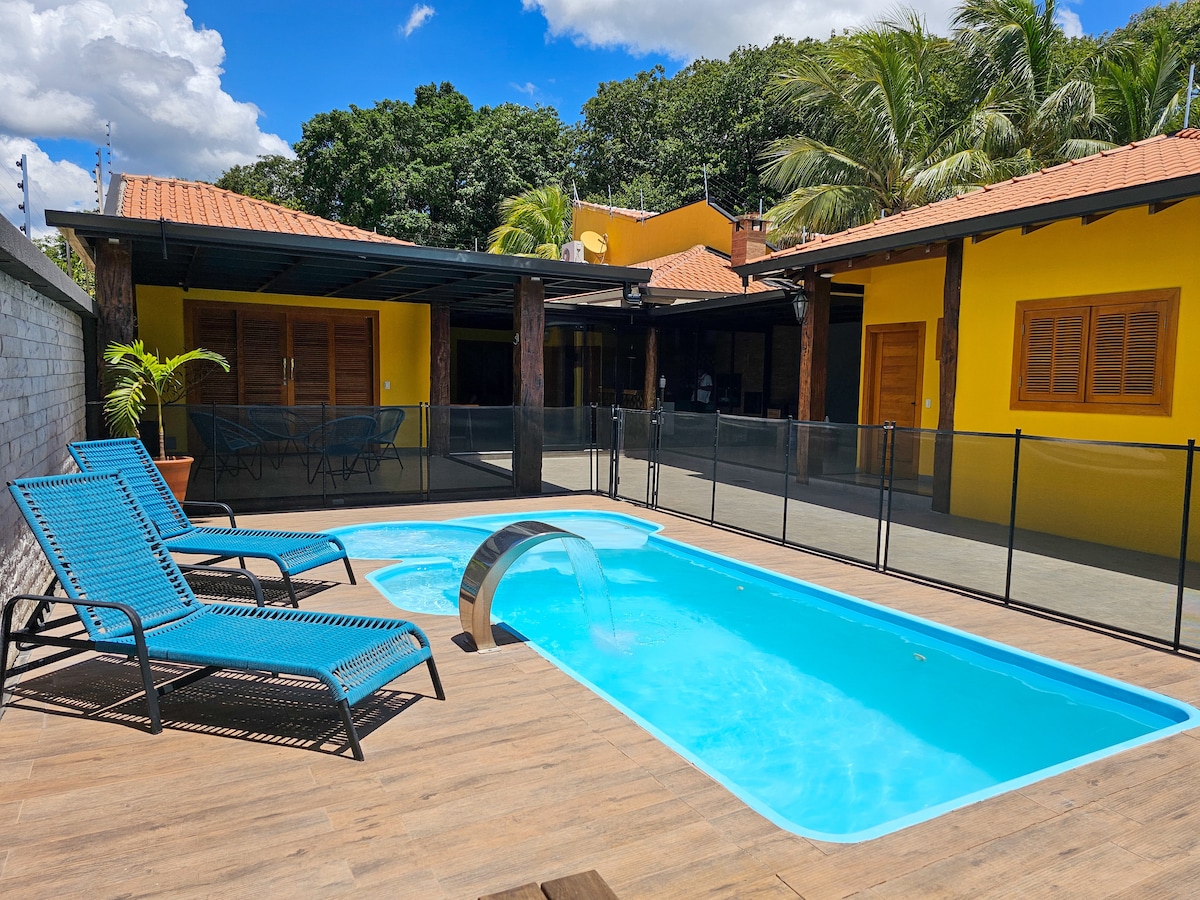 Esta é a casa que você procura para suas férias em família! Com três suítes auper confortáveis, com entradas independentes, a casa comoda até 10 pessoas. Possui sala de TV, cozinha interna e varanda Gourmet super completa, que é o coração da casa. Todos os ambientes são climatizados, garantindo o conforto em dias quentes. A área externa é um verdadeiro convite ao lazer: a piscina é cercada, garantindo a segurança das crianças, que terão um espaço enorme para brincar e se divertir à vontade.