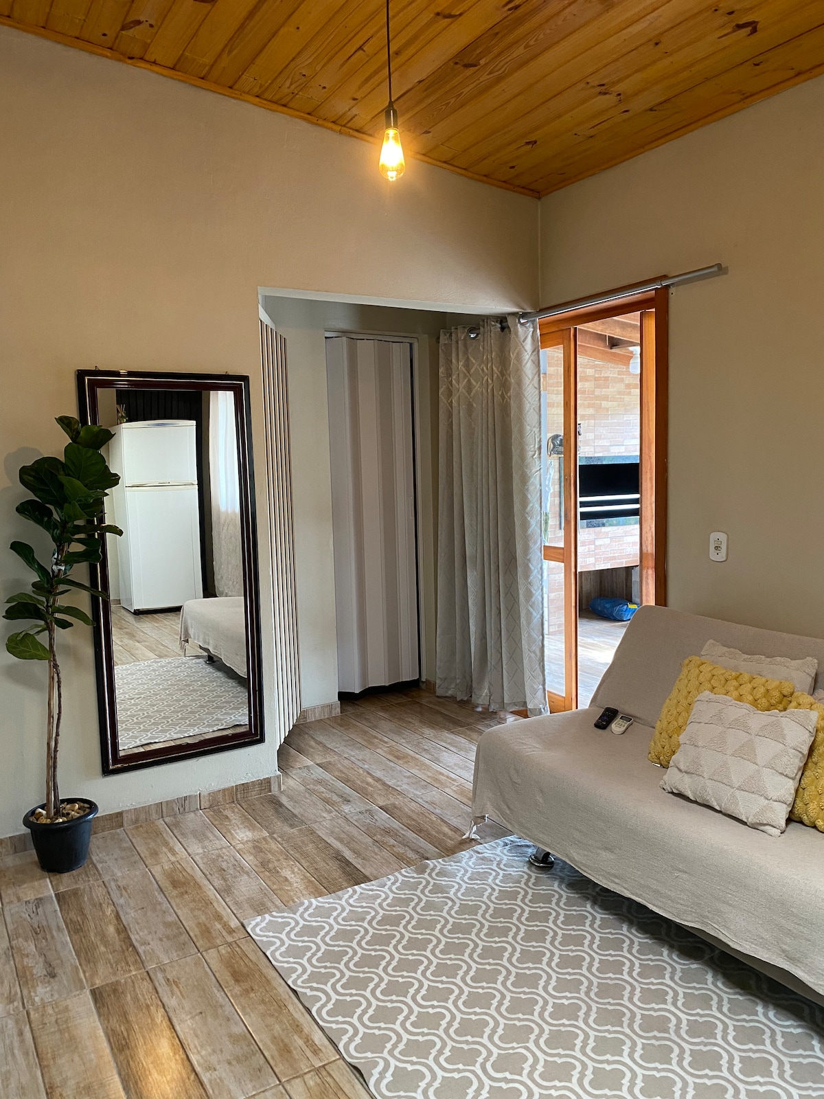 O dia-a-dia na cidade pede um descanso em um local aconchegante com tranquilidade próximo à natureza. Fora do agito da cidade, e com o conforto necessário para se sentir em casa, os hóspedes podem desfrutar de uma casa ampla e completa, com uma encantadora vista para o riacho, que a noite é a trilha sonora perfeita para um bom descanso. O gramado conta com árvores frutíferas da estação à disposição. Aprecie a beleza natural do interior da Serra Gaúcha em um local inesquecível.