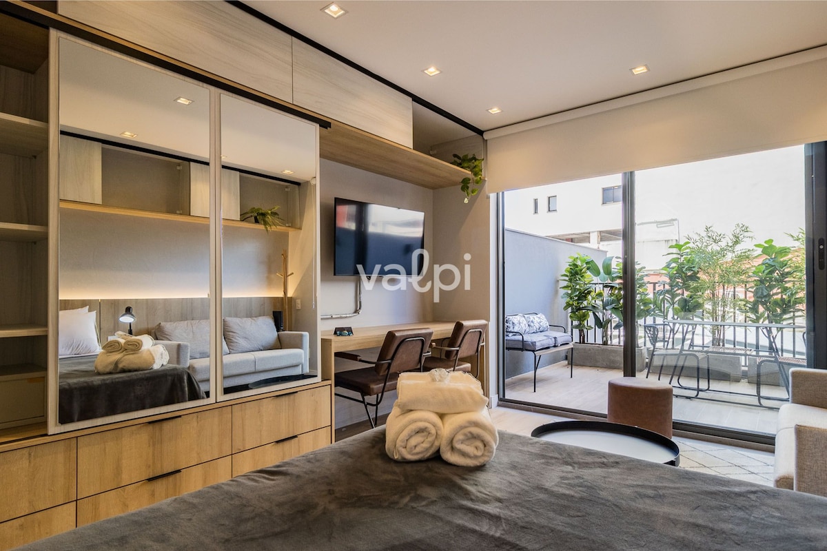 Studio Moderno e Confortável no Coração de Porto Alegre - GO24 Este estúdio aconchegante oferece uma experiência completa de conforto e praticidade, ideal para quem busca estadias curtas ou de longa duração no coração de Porto Alegre. Localizado em uma área vibrante e de fácil acesso, o GO24 Studio conta com design moderno, decoração clean e funcional. É o espaço perfeito para quem valoriza estilo e conveniência.