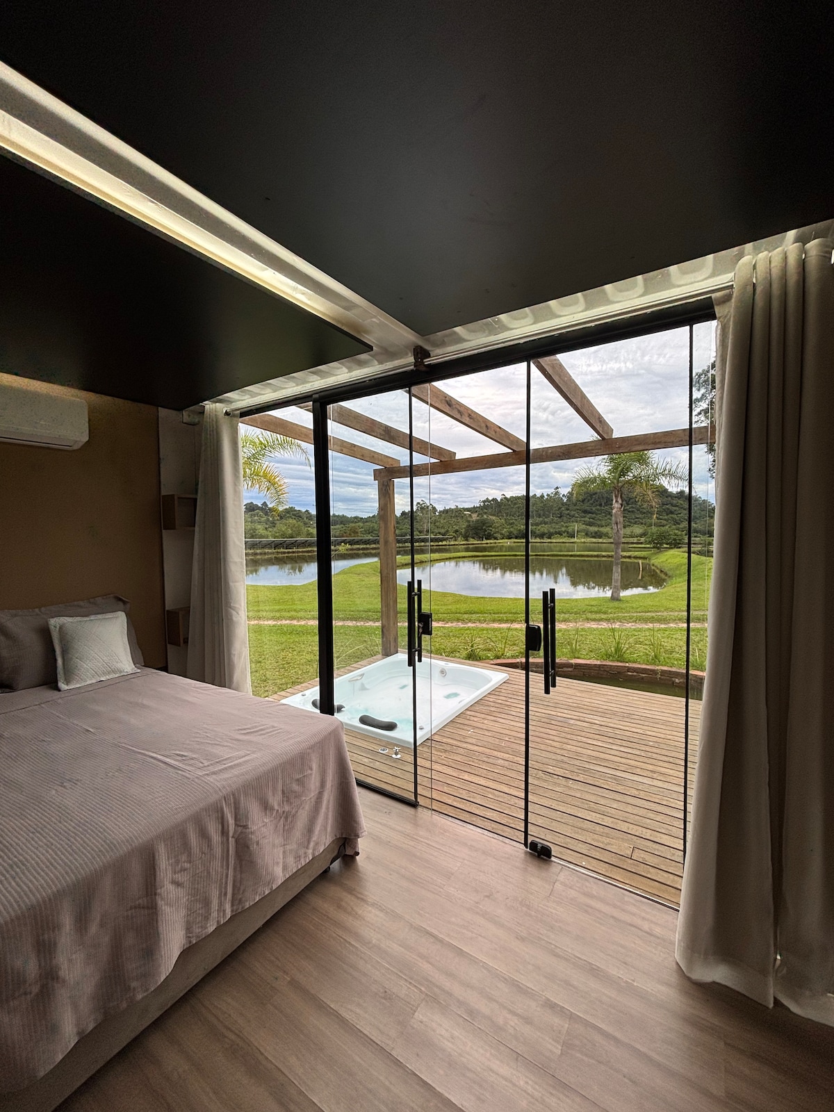💫 Cabana Ômega – Refúgio de Amor em Meio à Natureza A 14km do Centro de Chapecó, lugar onde o tempo desacelera, som da natureza que convida ao aconchego. ❤️ O que torna a experiência única: Duas lareiras Iluminação automatizada Banheiro de vidro Churrasqueira de parilha Acesso exclusivo ao rio e à lagoa Roupas de cama, mesa e banho inclusas Café da manhã incluso Seja para celebrar o amor, renovar as energias ou simplesmente se reconectar com o essencial, a Cabana Ômega é o destino perfeito!