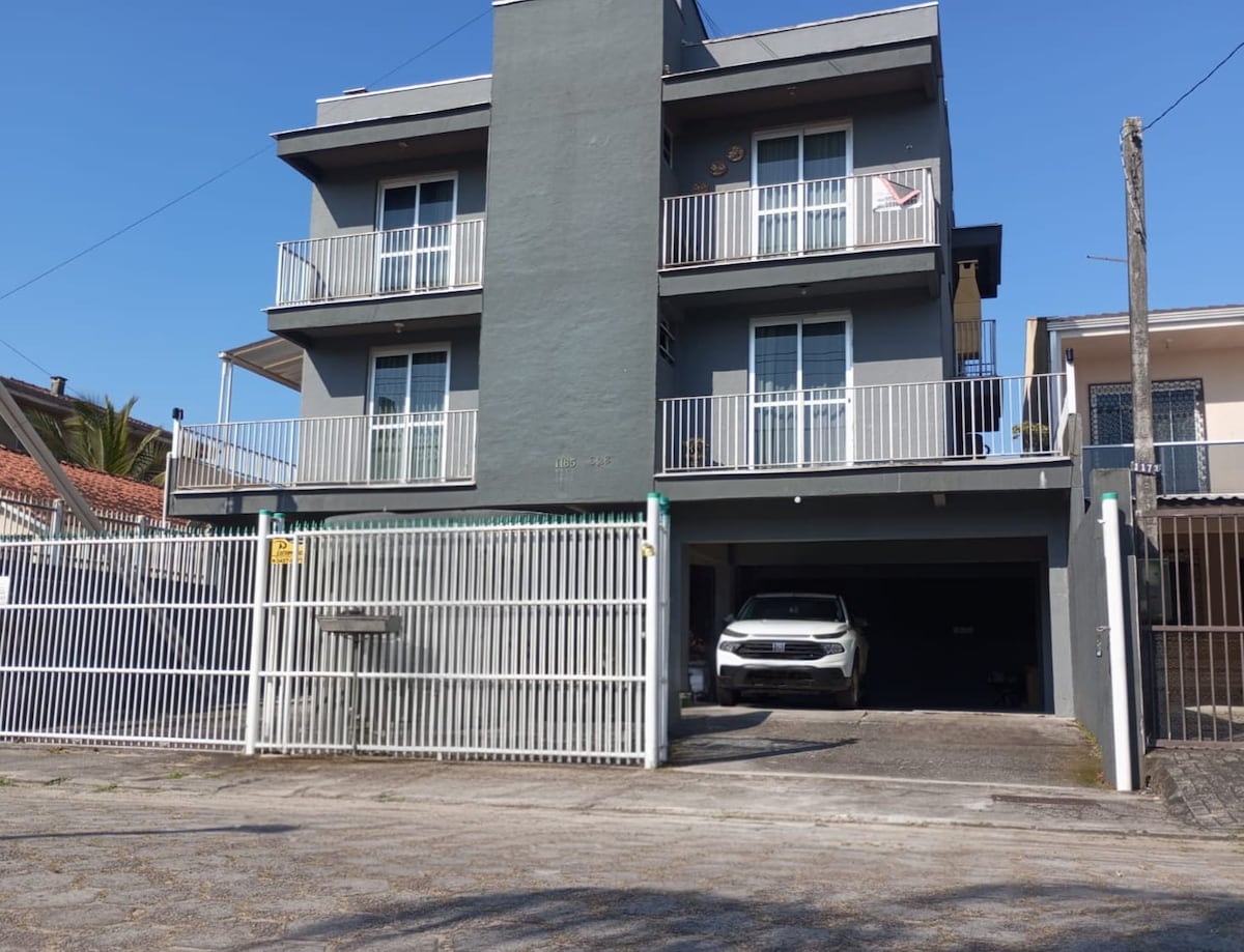Venha relaxar num studio beira mar, numa praia tranquila e limpa, a 10 km do centro de Caiobá. O prédio possui elevador, amplo terraço com vista para o mar e salão de festas. *O apartamento não possui vista por mar.* *Não há roupas de cama e de banho.* *Acomoda bem no máximo 2 adultos e 2 crianças.* Temos vaga de garagem. A região oferece ótima estrutura: restaurantes, mercados, farmácias, padarias, parquinhos infantis.