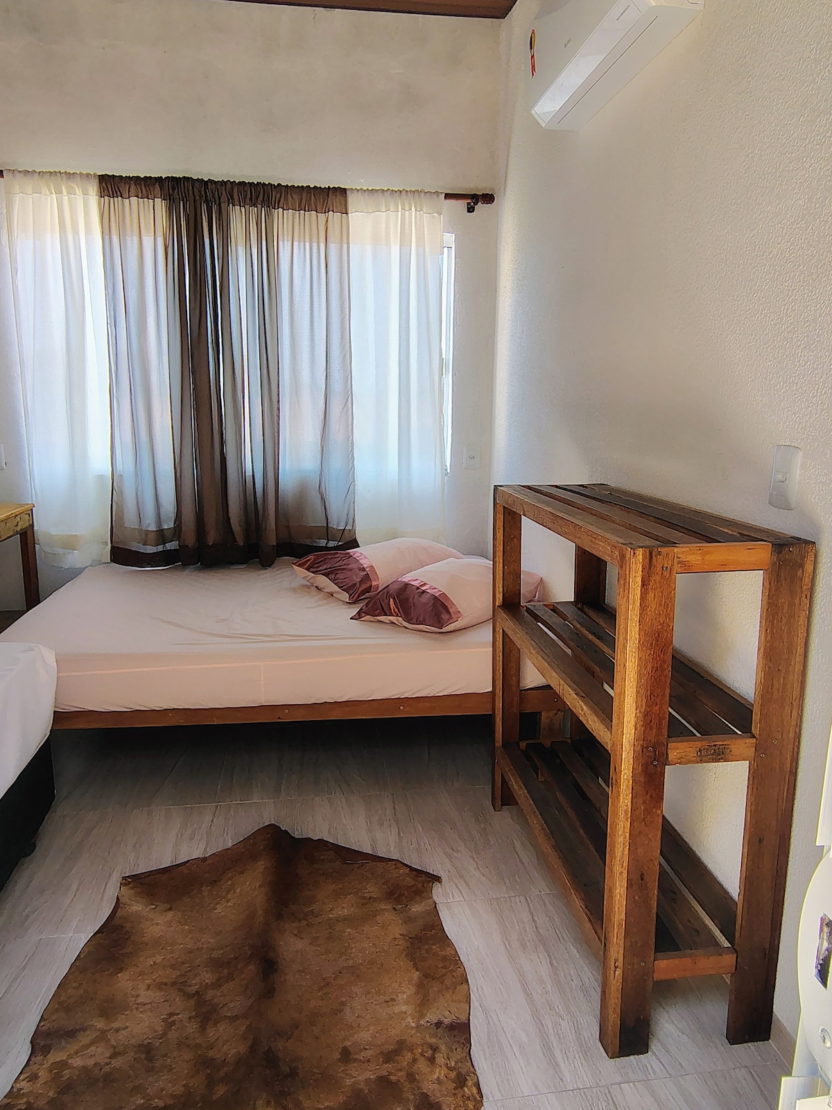 Esta suíte não é indicada para pessoas exigentes. A acomodação fica no piso térreo e não possui bom isolamento acústico do ruído que vem do piso superior que é de assoalho. O quarto é espaçoso, com ar condicionado, frigobar e banheiro privativo. Está localizada na propriedade de uma família tradicional da vila das encantadas, ILHA DO MEL. A localização é central, aproximadamente 450 metros do desembarque, praias e restaurantes. O café da manhã é simples.