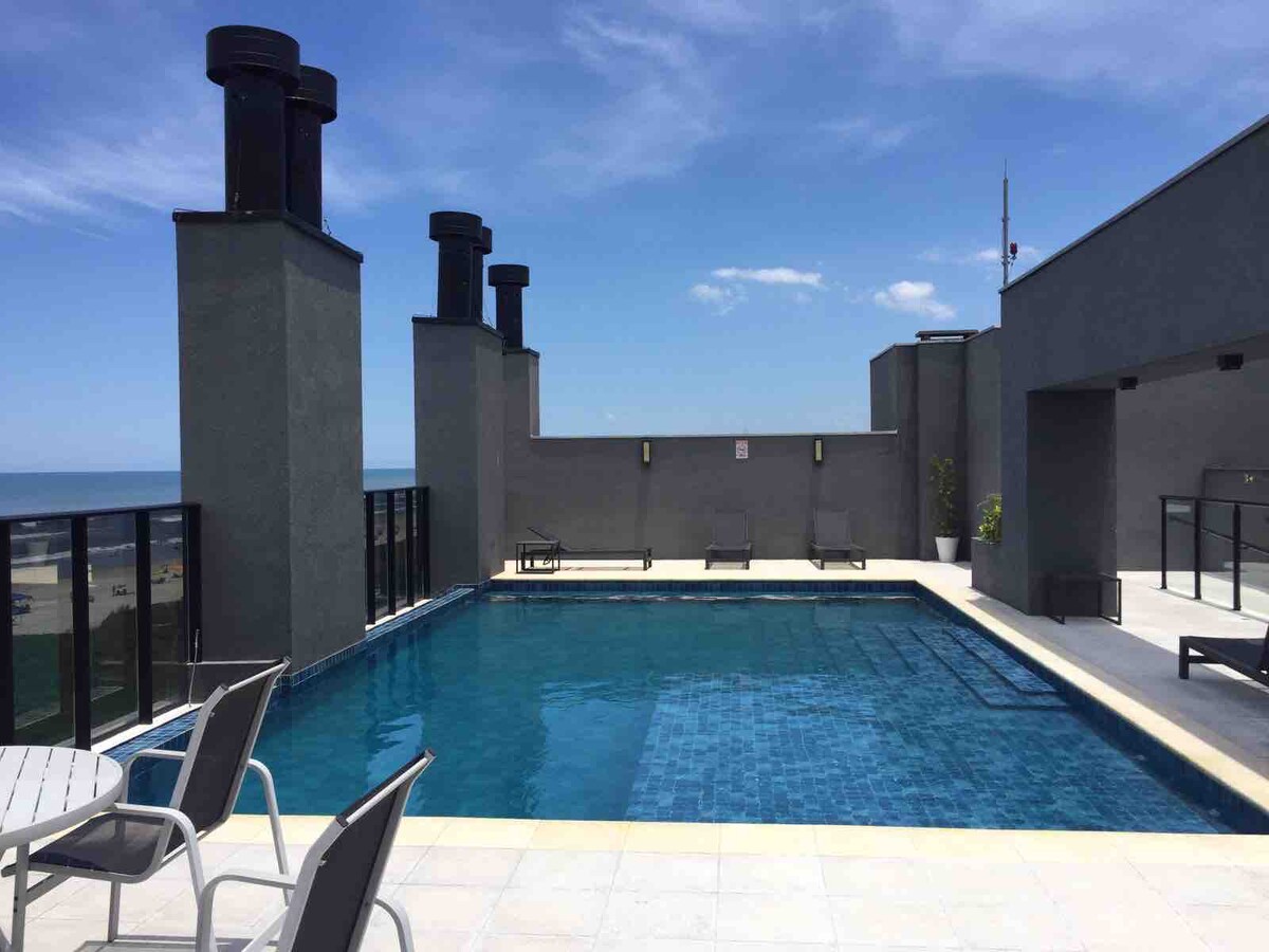 Imagine se hospedar num pequeno pedaço do paraíso, longe do agito, para relaxar e desfrutar de uma vista maravilhosa da praia. O apartamento faz parte do condomínio Smart Costa Azul, um empreendimento requintado e de destaque na região. Está localizado a 12km do centro de Matinhos. Dispomos de sacada e quarto de frente para o mar, terraço panorâmico com piscina de borda infinita, estacionamento gratuito em vaga coberta, elevador, duchas externas e espaço pet.