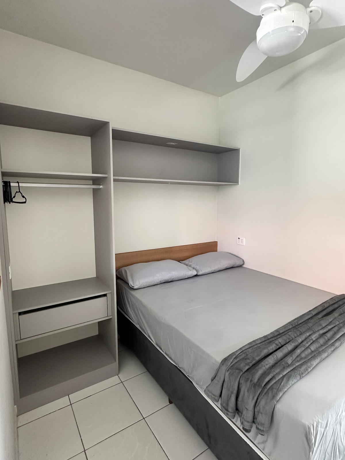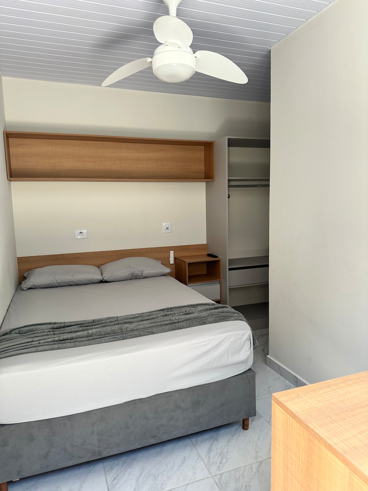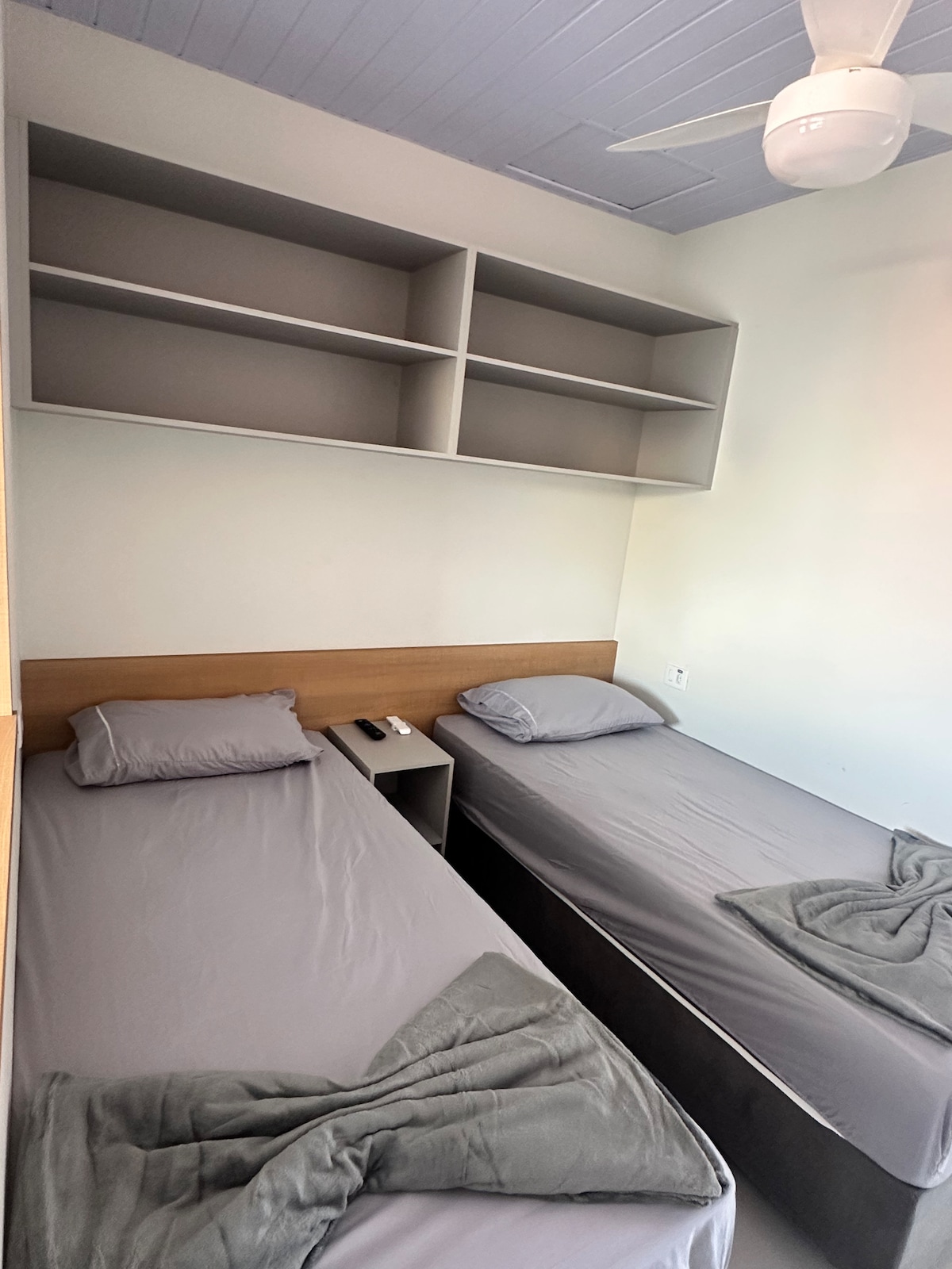 AP tipo Studio, ambiente pequeno e aconchegante com internet WiFi! Por ser no último andar, possui escadas! Até 7 pessoas. Valores adicionais a partir da 2ª até a 7ª pessoa. Condomínio possui: Piscina, Play ground, Cancha, Portaria, Churrasqueiras, salão de jogos; WiFi recreativo. É necessário exame médico para uso da piscina a partir de 01/12/2025, toda 2ª feira é fechada para limpeza! Fechadura digital com senha informada pela anfitriã. Não fornecemos roupas de cama e banho.