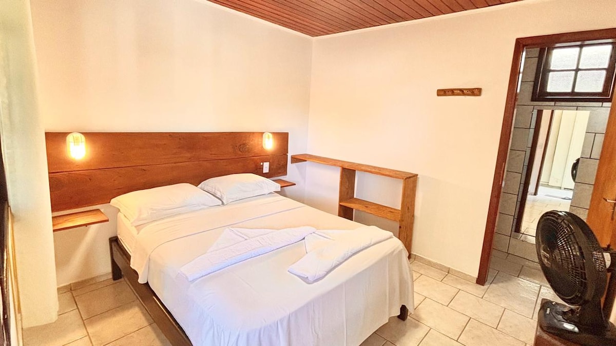 Quarto simples e aconchegante, lugar tranquilo e bem-localizado - de fácil acesso para chegada com as bagagens, também para visitar os principais pontos turísticos da Ilha. Oferecemos roupa de cama,toalhas de banho, travesseiros, ventilador e frigobar. Banheiro privado (Suíte). Perfeito para relaxar depois de um dia bem aproveitado na Ilha 🏝