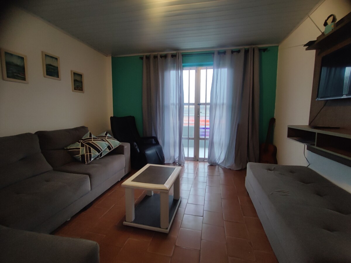 Fica a 1 quadra da praia. Com sala/cozinha (bicama) + 1 quarto (suíte, cama de casal), tem todo conforto para o hóspede economizar $ e cozinhar no local (fogão, geladeira e utensílios domésticos, churrasqueira e lavanderia externa). Acomoda até 4 pessoas. Fica nos fundos da minha casa, possui portão divisorio entre as casas. É permitido pets, desde que dóceis. O carro deve ficar estacionado paralelo à rua (vizinhança tranquila). Avisar sobre checkin após as 21h, pois serão avaliados .