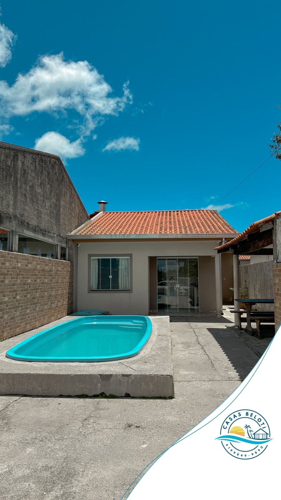 Relaxe com toda a família nesta casa completa em Matinhos/Balneário Céu Azul, a apenas 350 metros do mar, fácil acesso à praia. Localizada em condomínio fechado, oferece conforto, segurança e tranquilidade. A casa possui 2 quartos e acomoda até 8 hóspedes em camas, contando com ar-condicionado, Wi-Fi fibra 100 mega, TV Smart e freezer. A área de lazer é totalmente privativa, com piscina, churrasqueira e TV na área da piscina, ideal para momentos de descanso com a família e amigos.