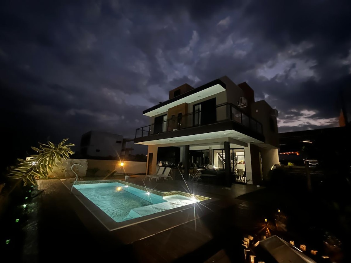 Casa maravilhosa, muito espaçosa e confortável com com 300m2 de area construida, sala enorme com 60m2. Toda equipada com ar condicionado nas salas e nos quartos. Área gourmet completa, com churrasqueira motorizada, forno a lenha, e geladeira extra. Piscina grande, com aquecimento central através de um sistema moderno de trocador de calor que aquece a piscina a 30° (é só avisar p ligar antes) Em outras notas e detalhes, leia sobre a utilização dos clubes, que são controlados pela administradora