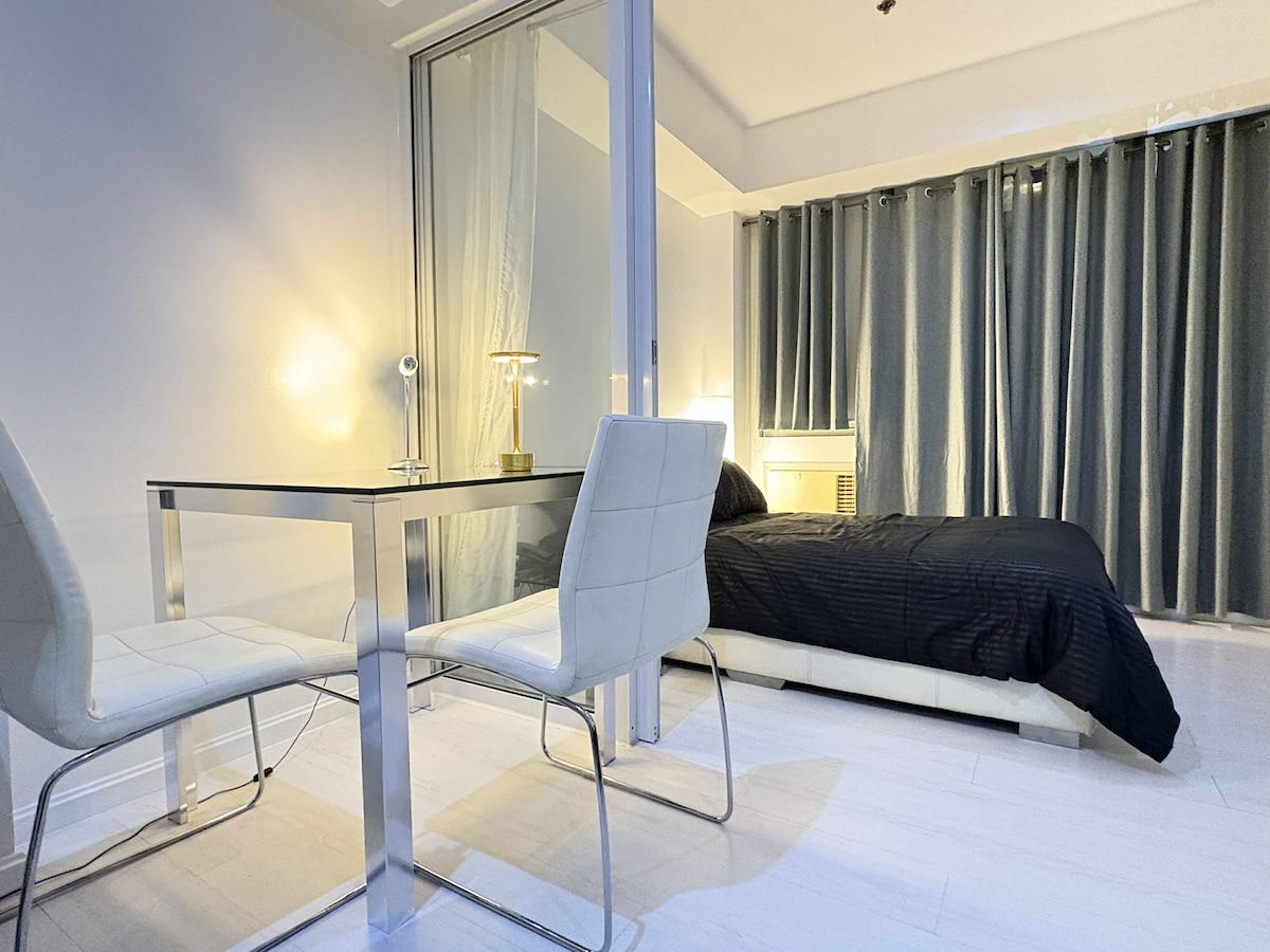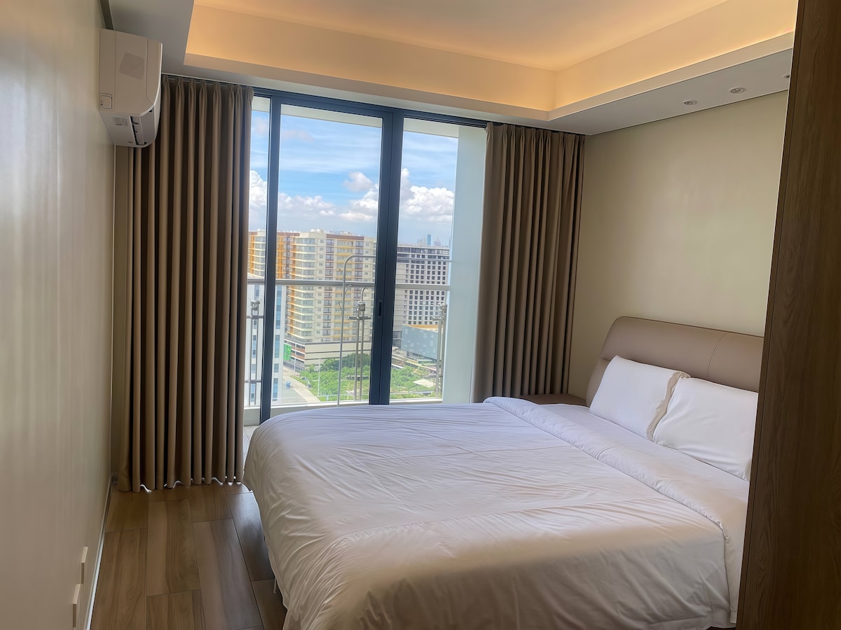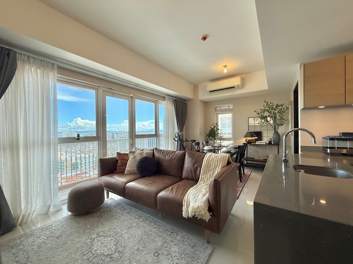 Azure is a sought for vacation as it offers beach front living in the city. This unit has Big Balcony and Open City view which means excellent daylight and cozy nights with city lights with comfy double sized bed, and another double size sofa bed, a game console for recreation, and it has fully equipped kitchen with ready condiments, large ice cube silicone tray. Important note: all guests are required to give a valid id. Azure residences does not allow visitors apart from registered guests.