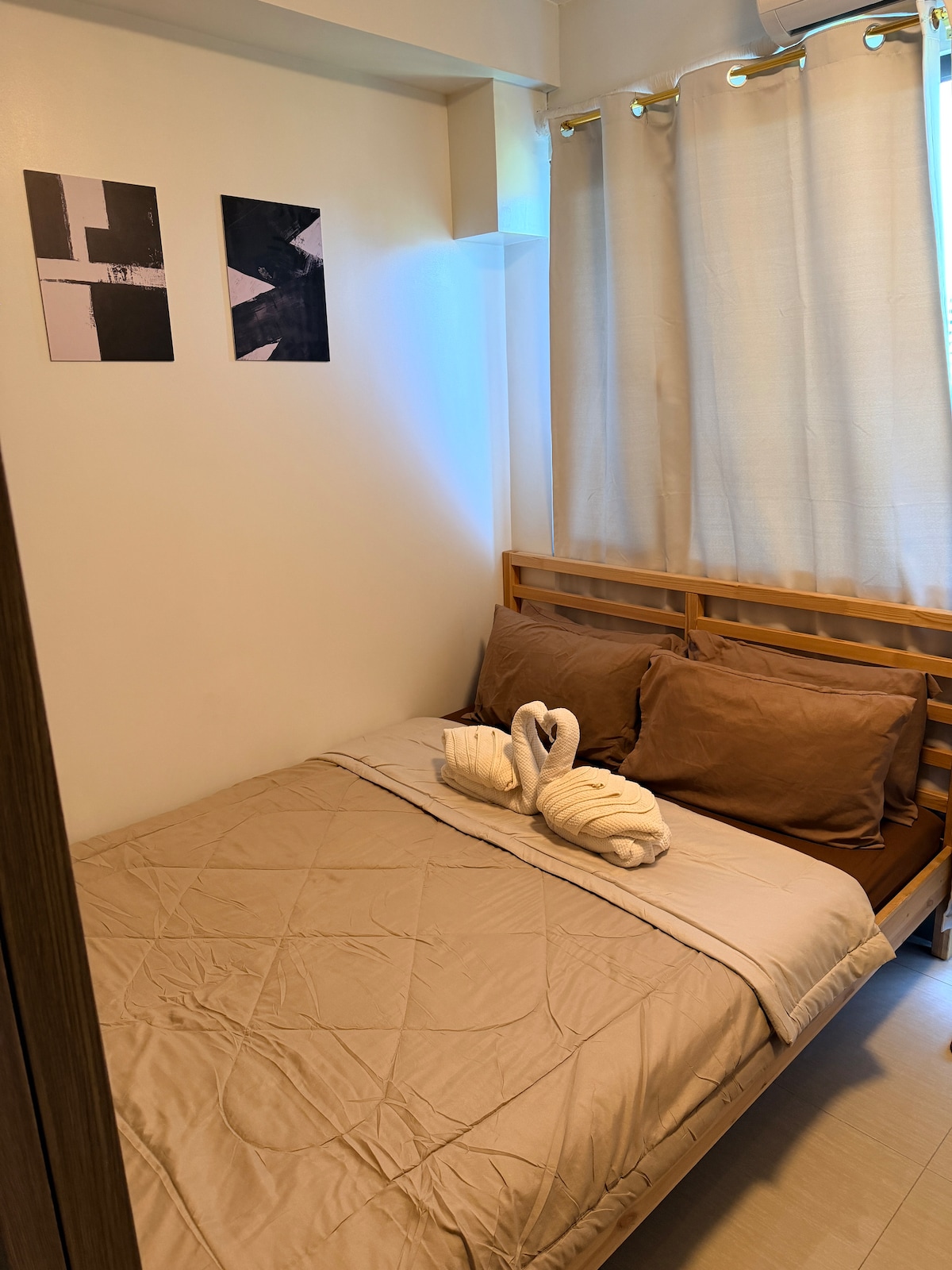 Stay cozy at Terra Mysa, a warm boho-Scandi condo just minutes from MOA, SMX, and NAIA 🍃 🎮 Unwind with Netflix, PS4, card and board games, and fast Wi-Fi, or get work done in the comfy desk area. Cook in the fully equipped kitchen, relax in the cozy bedroom, or enjoy coffee on the balcony ☕️ Perfect for staycations, remote work, or quick city getaways — this is where comfort and calm meet right in the heart of Pasay 🤎