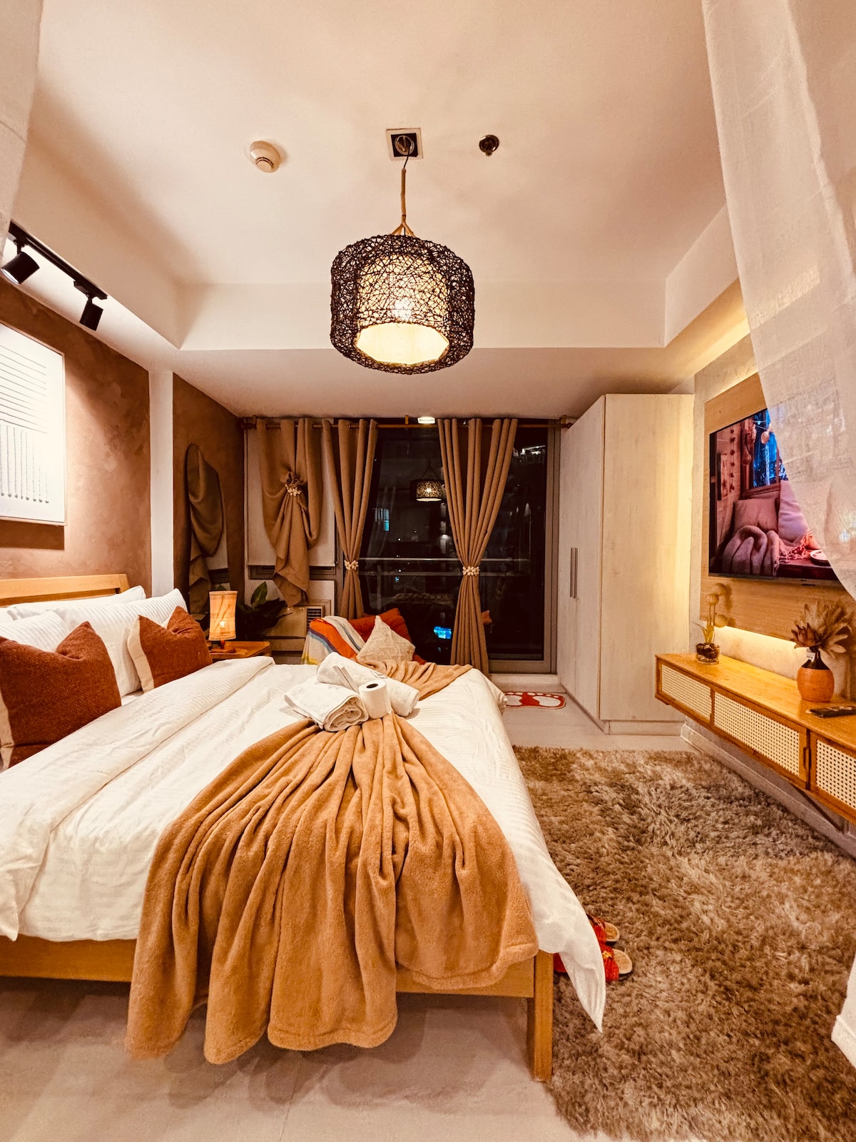 A fully-furnished, Ig-worthy, cozy and stylish 34sqm, 2-BR condo corner unit with an awesome balcony where you can relax, celebrate important events or just have a quick get-away with your family or friends and enjoy unique, world-class amenities like the wave pool, man-made white beach, children's playground, basketball court, gym, volleyball court, beach bar, sky garden and many more. It is just a 5-minute walk from a shopping mall (SM Bicutan) and only 10-15 minutes away from NAIA Airport.