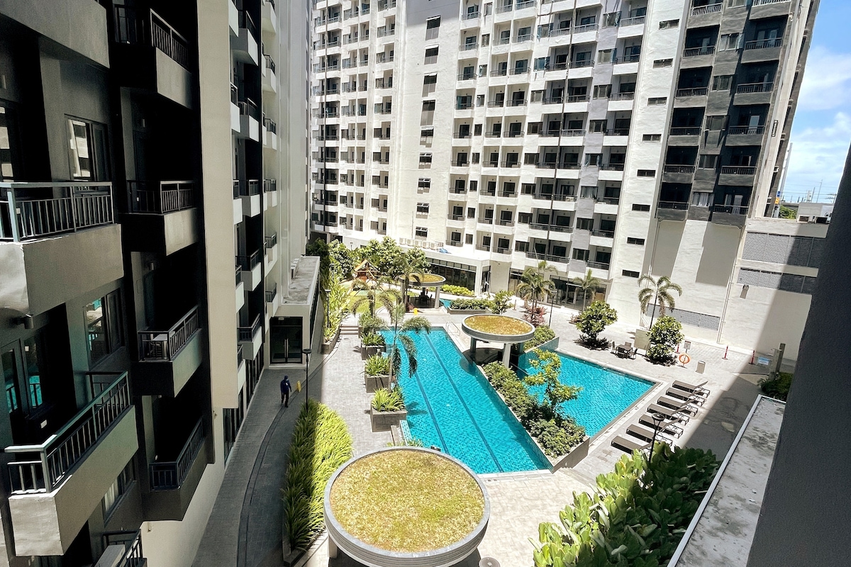 A luxurious smart condo with cozy balcony, swimming pools, free WiFi, Netflix, Xbox, air purifier and keyless entry. Walking distance from mall and minutes away from airport. *Keyless Access *Xbox *50Mbps WiFi *Netflix & YouTube *43 inch Smart HDR Internet LED Sony TV & Sony Soundbar *Bose speaker *Air Purifier *2 hp inverter A/C *Ceiling Fan *Double bed w/memory foam mattress & luxury linnen *Hot & Cold Drinking Water Dispenser *Hot Shower *Washing Machine *Complete Kitchen! *28.19 sqm