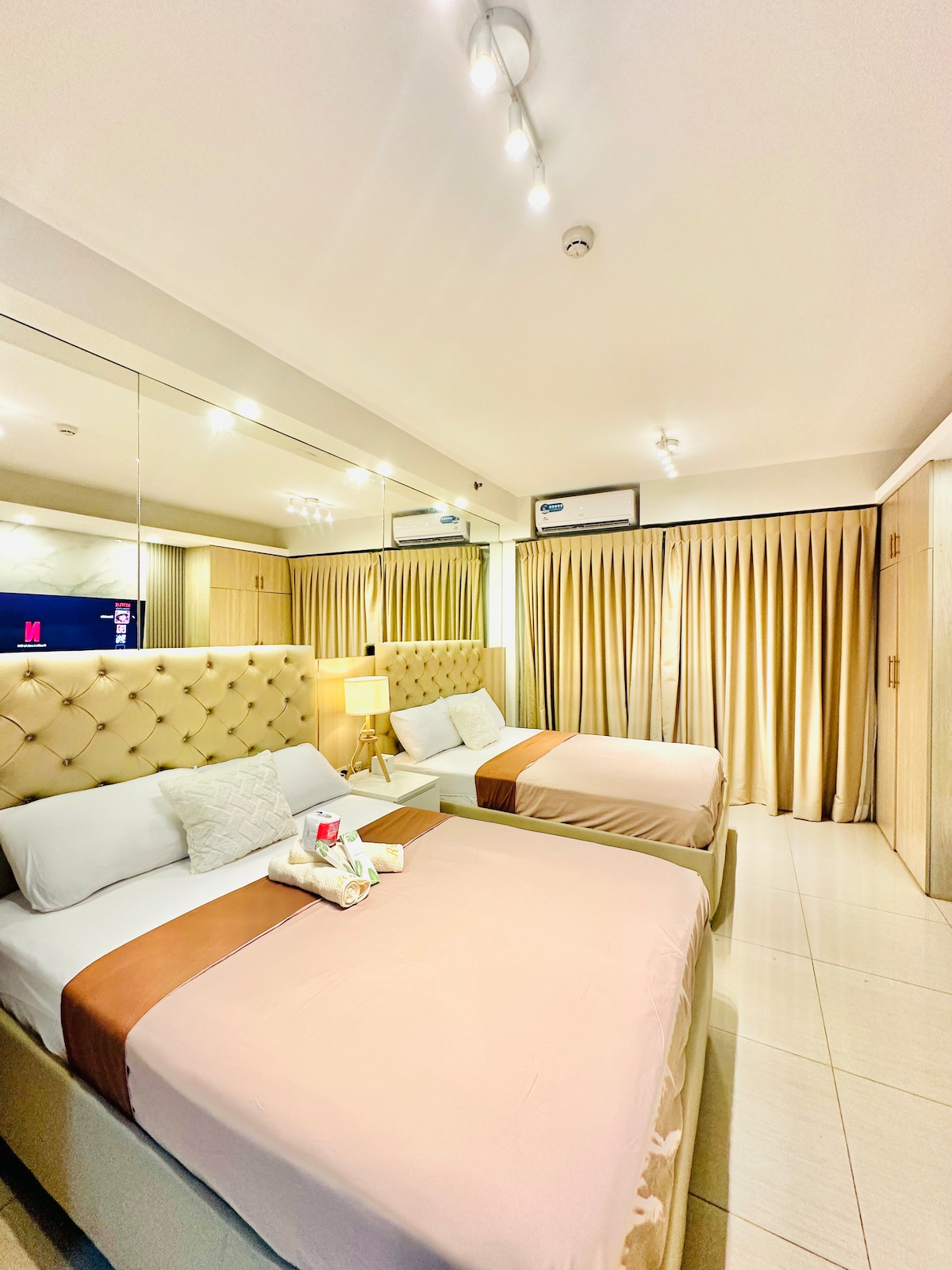 Spacious 27.23 sq.m. (~293.10 square feet) cozy and relaxing private hotel suite at 14F of LANCASTER HOTEL MANILA near MRT Shaw, Shangrila Mall, Greenfield District, Megamall, Star Mall EDSA Shaw, and WCC. See More... 🟩Cozy Hotel Interior Ambiance 🟩Queen Size Bed + Orthopedic Mattress 🟩Hot Bath Tub 🟩FREE Pool Access at Rooftop 🟩500 MBPs Ultra-Fast Wifi Speed 🟩43" UHD 4K Smart TV + Soundbar for Cinematic Sound 🟩Netflix + HBO Max + Disney Plus + Prime Video + Spotify 🟩Bluetooth Speaker