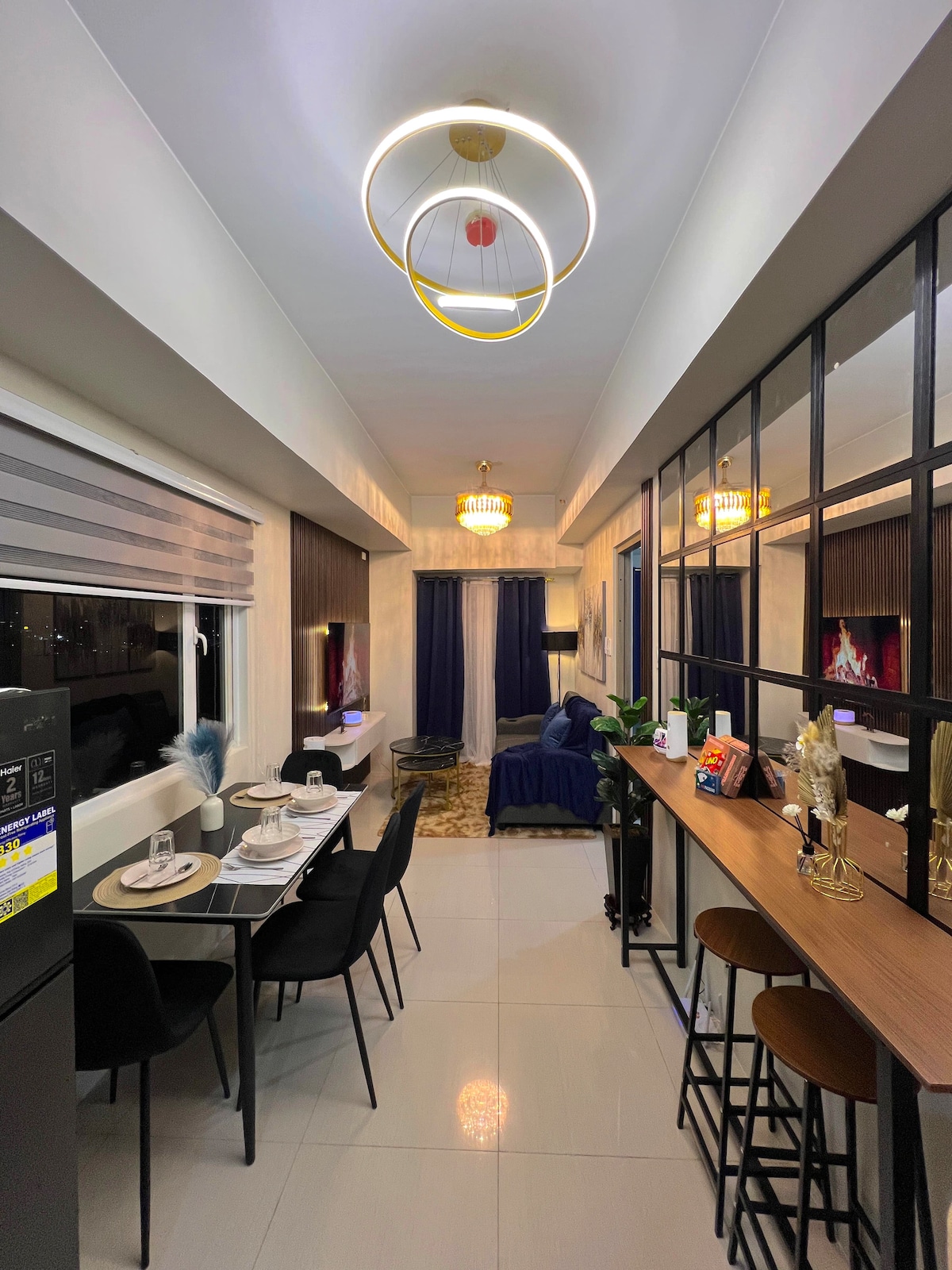 With 500MBPS WIFI in NEWLY Industrial stylish and classy AFFORDABLE AIRBNB condo at AIR RESIDENCES MAKATI the heart of Makati's business district. Enjoy city views from floor-to-ceiling windows, Netflix on a 60" TV, theres Nespresso machine with free coffee pods for you.The apartment features appliances, a hair dryer, electronic stove, iron, refrigerator, washing machine, toaster, microwave and shower with heater, a work/study area,highlight is the breathtaking view of high-rise buildings.