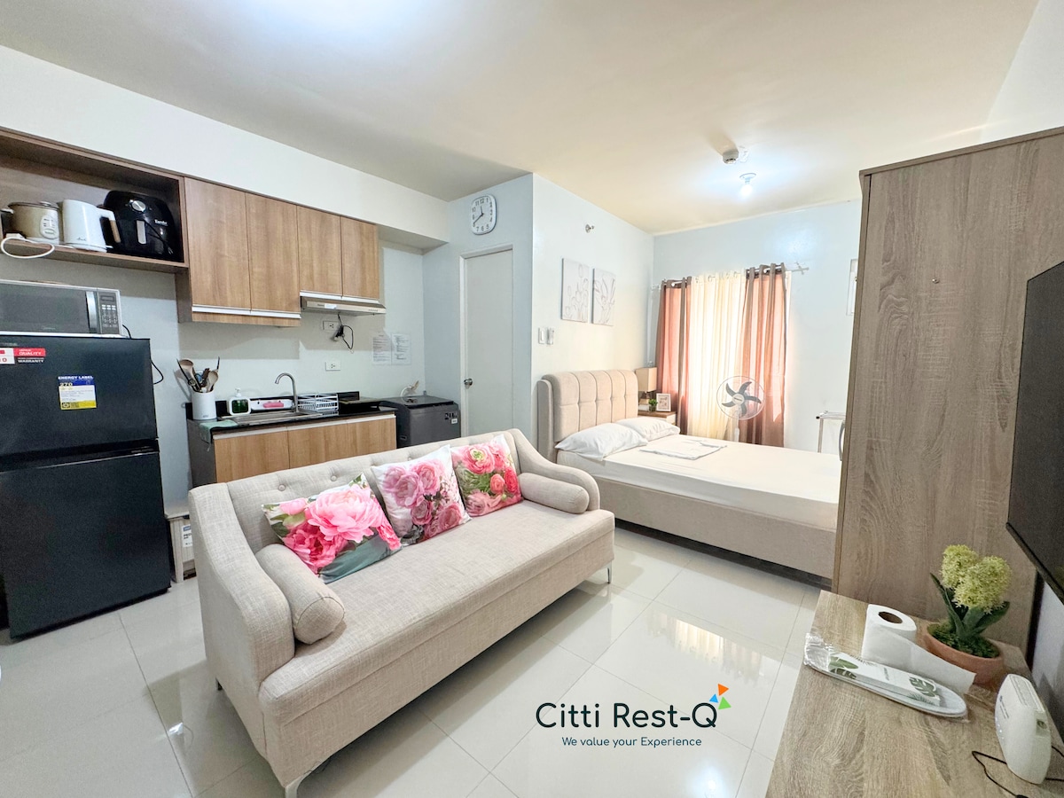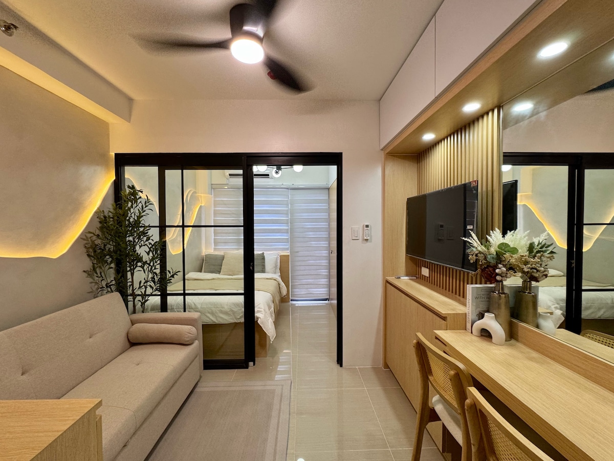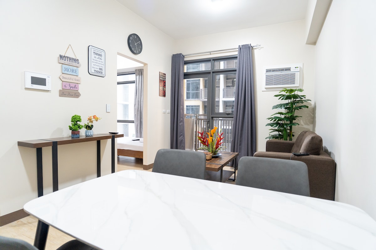 A luxurious smart condo with cozy balcony, swimming pools, free WiFi, Netflix, Xbox, air purifier and keyless entry. Walking distance from mall and minutes away from airport. *Keyless Access *Xbox *50Mbps WiFi *Netflix & YouTube *43 inch Smart HDR Internet LED Sony TV & Sony Soundbar *Bose speaker *Air Purifier *2 hp inverter A/C *Ceiling Fan *Double bed w/memory foam mattress & luxury linnen *Hot & Cold Drinking Water Dispenser *Hot Shower *Washing Machine *Complete Kitchen! *28.19 sqm