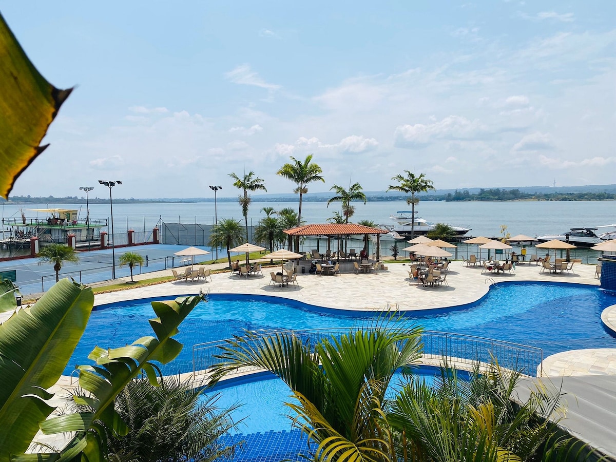 Localizado no Condomínio Life Resort! Apto com vista frontal para a piscina/lago Paranoá, TV a cabo, filtro de água, Wi-Fi; Com excelente localização.( 7 min. da esplanada dos Ministérios e 10 min. da EMBAIXADA AMERICANA ) próximo ao setor de embaixadas norte; Dentro do condomínio conta com restaurante, pizzaria, salão de beleza, café, loja de conveniência, mini mercearia, lavanderia e pub!