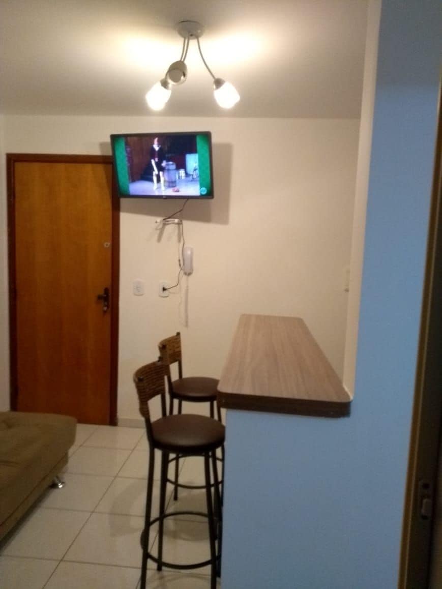 Flat com varanda com vista para área interna do condomínio, mais sossegado e longe do barulho da área de lazer, mobília completa, ar condicionado, cafeteria dolce-gusto, tv lcd com cabos HDMI e antena, apenas canais abertos, geladeira, microondas, armários, louças e roupas de cama e banho. 2 piscinas, academia, conveniência e parquinho. Perfeito para sossego, conforto e a beleza do lago, o prazer de viver em um Resort com tranquilidade e próximo ao centro político, unb e embaixadas.