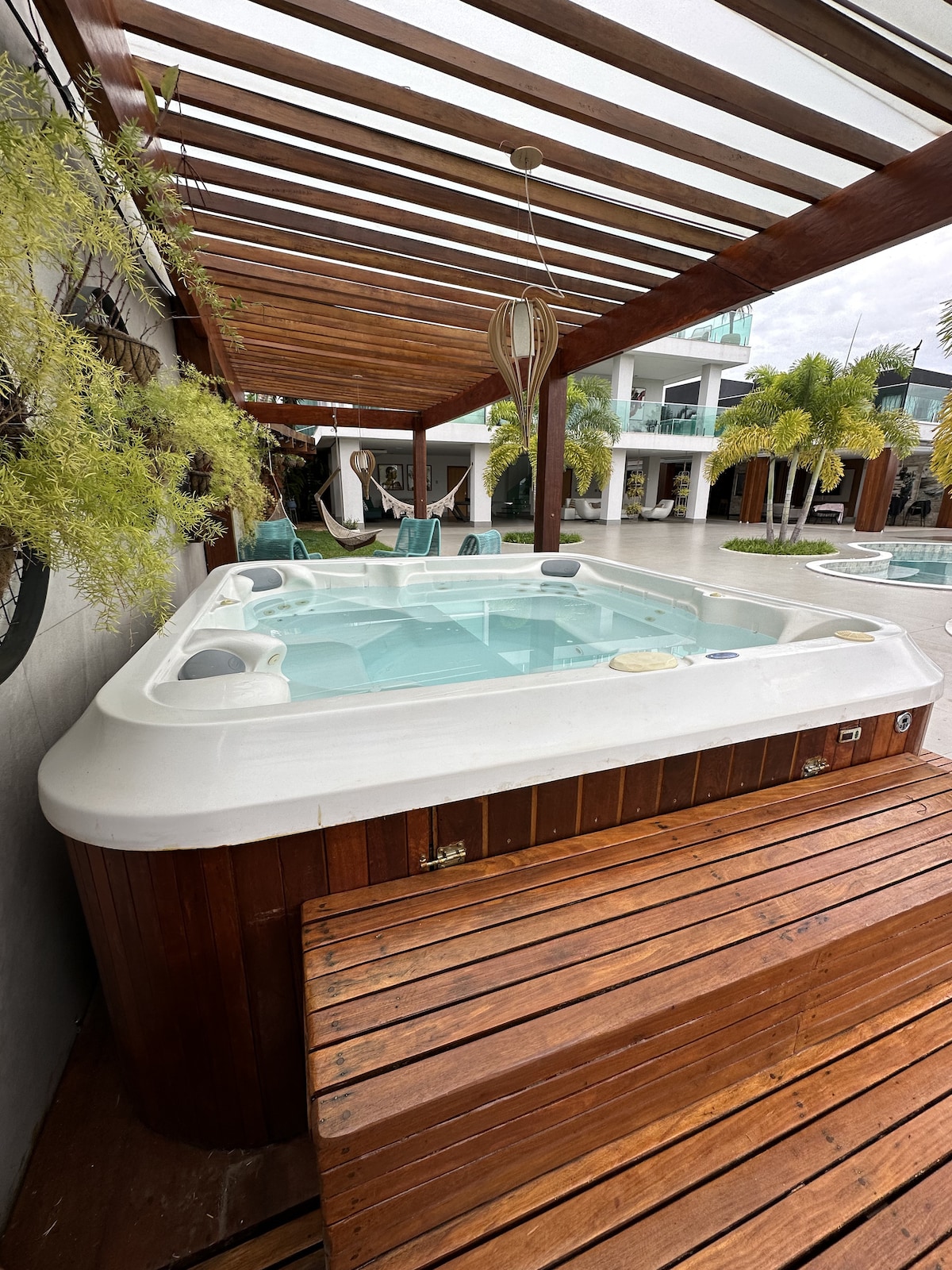 A Casa Mahalo possui piscina com cascata e jacuzzi com hidromassagem aquecidas para reunir família e amigos com conforto, lazer e privacidade. Acomoda até 10 hóspedes e oferece churrasqueira completa e wifi rápido para trabalho ou streaming. Localizada em condomínio fechado no Jardim Botânico, a 25 minutos do centro, com segurança 24h e comércio a 1,5km do condomínio. Reserve e viva dias inesquecíveis!