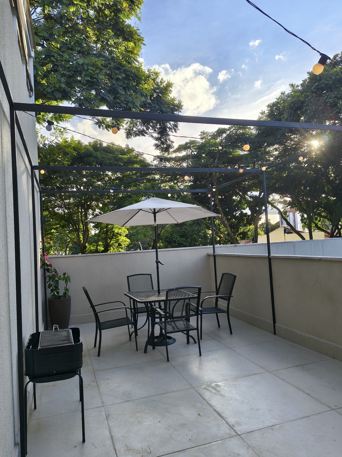 O "Puxadinho" fica dentro do ap onde moro com minha familia.Tem:Entrada independente,privativa e exclusiva,pequeno banheiro dentro do quartinho de 6m² box cortina de tecido,tem uma cozinha exclusiva compacta para refeicoes rapidas(microondas,frigobar, fogao a gás e pia).Colchao box confortável,roupas de cama e toalhas.A Regra mais importante:"Não aceitamos visitas aos hóspedes".Comercio variado,farmacia e academia a 100 passos.Estacionamento publico debaixo do "Puxadinho".Área externa arborizada