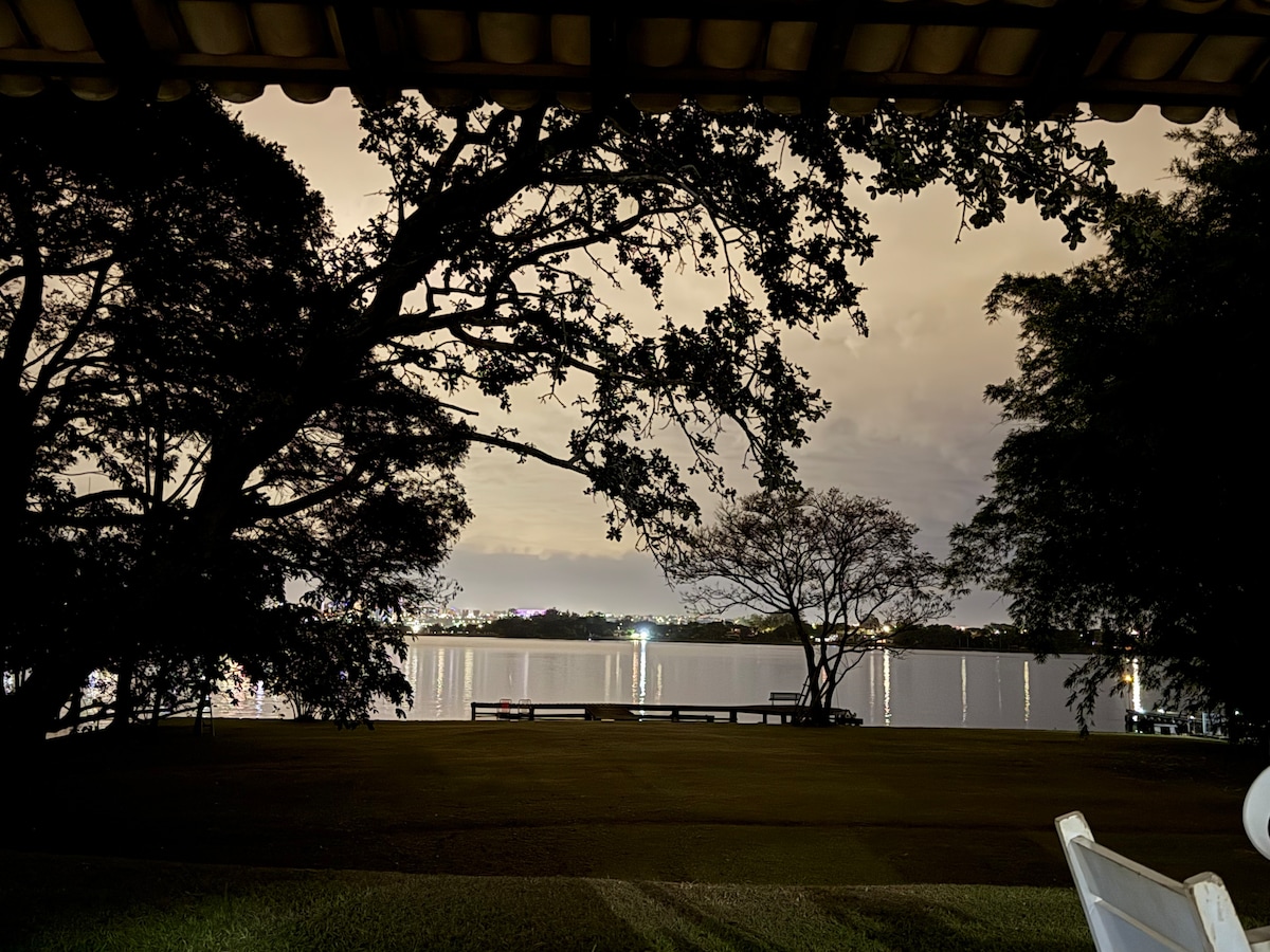 Refúgio moderno à beira do Lago Paranoá, com uma das vistas mais privilegiadas de Brasília. Os hóspedes nos dizem: 'foi a melhor experiência Airbnb que já tivemos!' Desperte com o lago, caminhe na natureza e contemple pores do sol de tirar o fôlego. Tudo novo, suíte com closet, 2o quarto, conforto e espaço sem igual. Três smart TVs, cozinha equipada, cafeteira com cápsulas e um super welcome kit. Localização perfeita: 9 min do Iguatemi, 15 min da Esplanada, 25 min do aeroporto.