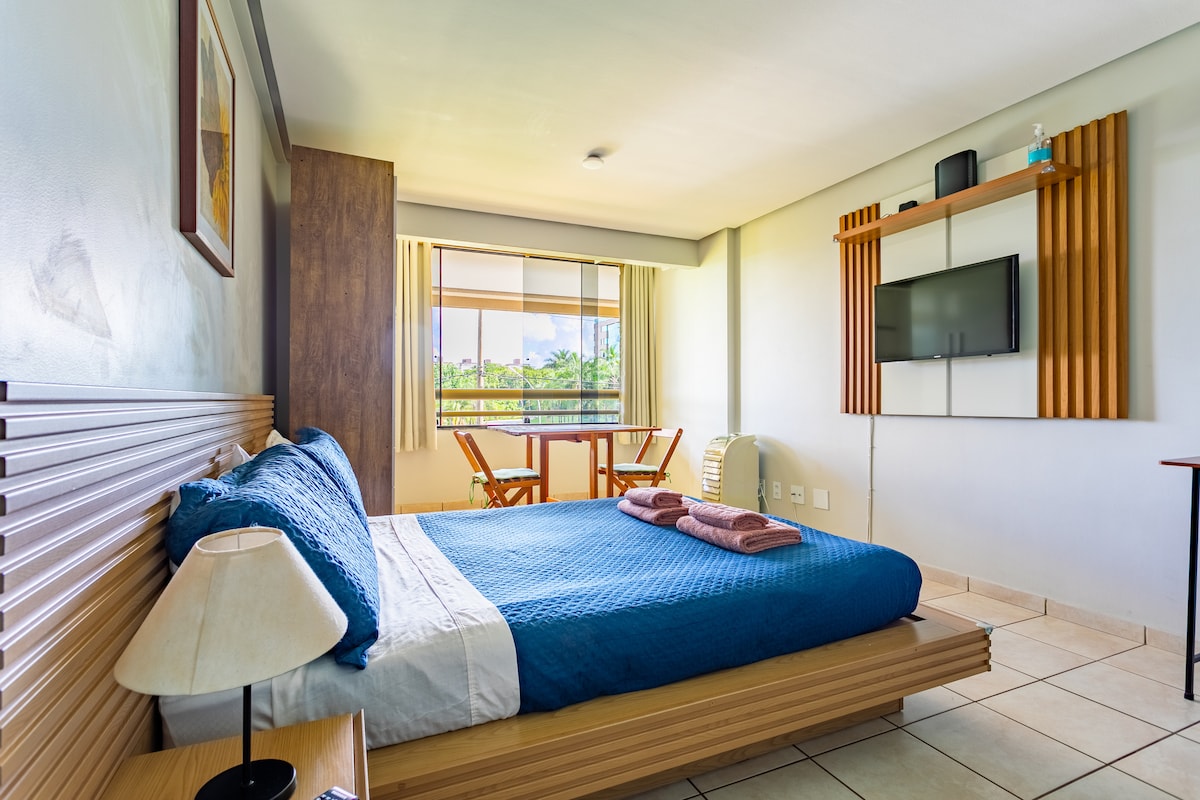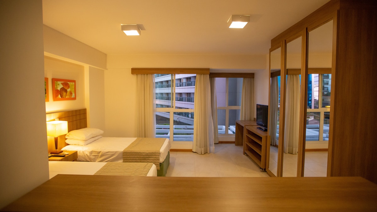 Studio mobiliado, com conforto, elegância e comodidades para sua estadia em Brasília. Condomínio fechado, com elevador e garagem privativa para sua segurança. Fácil acesso (inclusive a pé) a lavanderia, supermercado, farmácia e restaurantes. Próximo ao Centro de Convenções, Estádio Nacional, Tribunal de Justiça e Governo do Distrito Federal. Fácil acesso turístico ao Memorial JK e à Torre de TV.