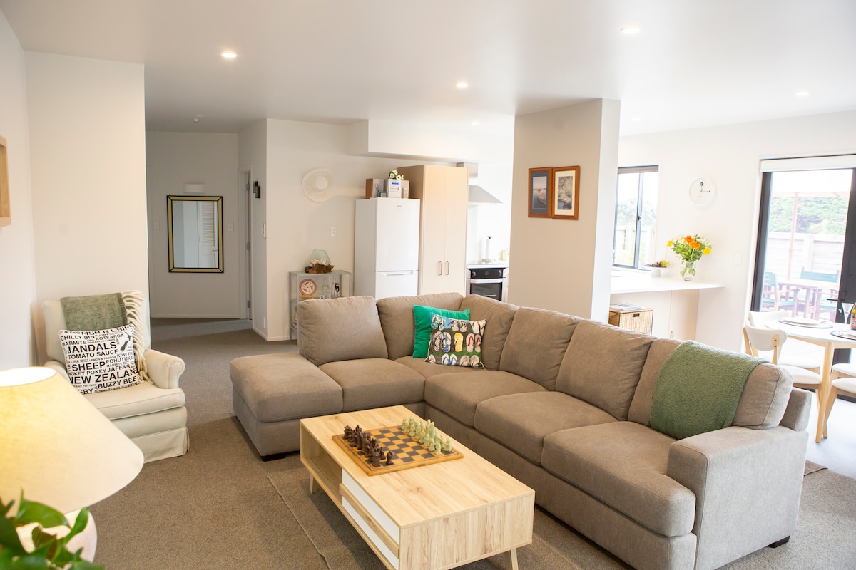 Paraparaumu海滩小屋。距离海滩仅几秒钟。