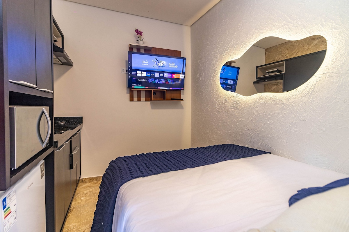 Localizado a 400 metros do Centro Histórico de Paraty perto dos principais pontos turísticos construído com todo carinho para seu conforto e bem estar. Nosso propósito é oferecer tranquilidade para seu descanso, com a sensação de se estar em casa. O Flat é preparado para lhe proporcionar uma estada agradável. Para casal e equipados com TV, ventilador de teto, banho privativo, e cozinha compacta com frigobar, microondas, cafeteira e sanduicheira.