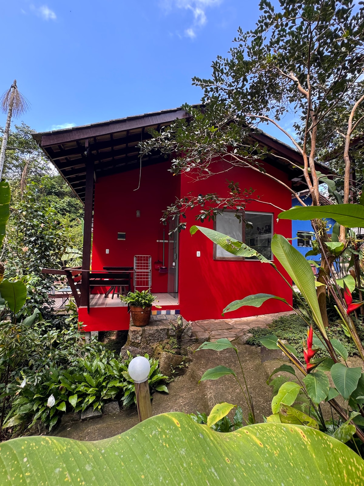 O chalé conta com cozinha completa, geladeira, micro-ondas, forno elétrico, cafeteira, TV SMART, ar condicionado, WiFi, estacionamento, quintal com redes e uma piscina deliciosa. Tudo pensado nos mínimos detalhes para fazer com que você se sinta relaxado. Quintal com muito verde, viveiros de araras e de suculentas, que o hóspede pode conhecer durante sua estadia, e a exuberante mata atlântica ao redor. Bairro tranquilo localizado a 15 minutos de Trindade e 15 min do centro histórico.